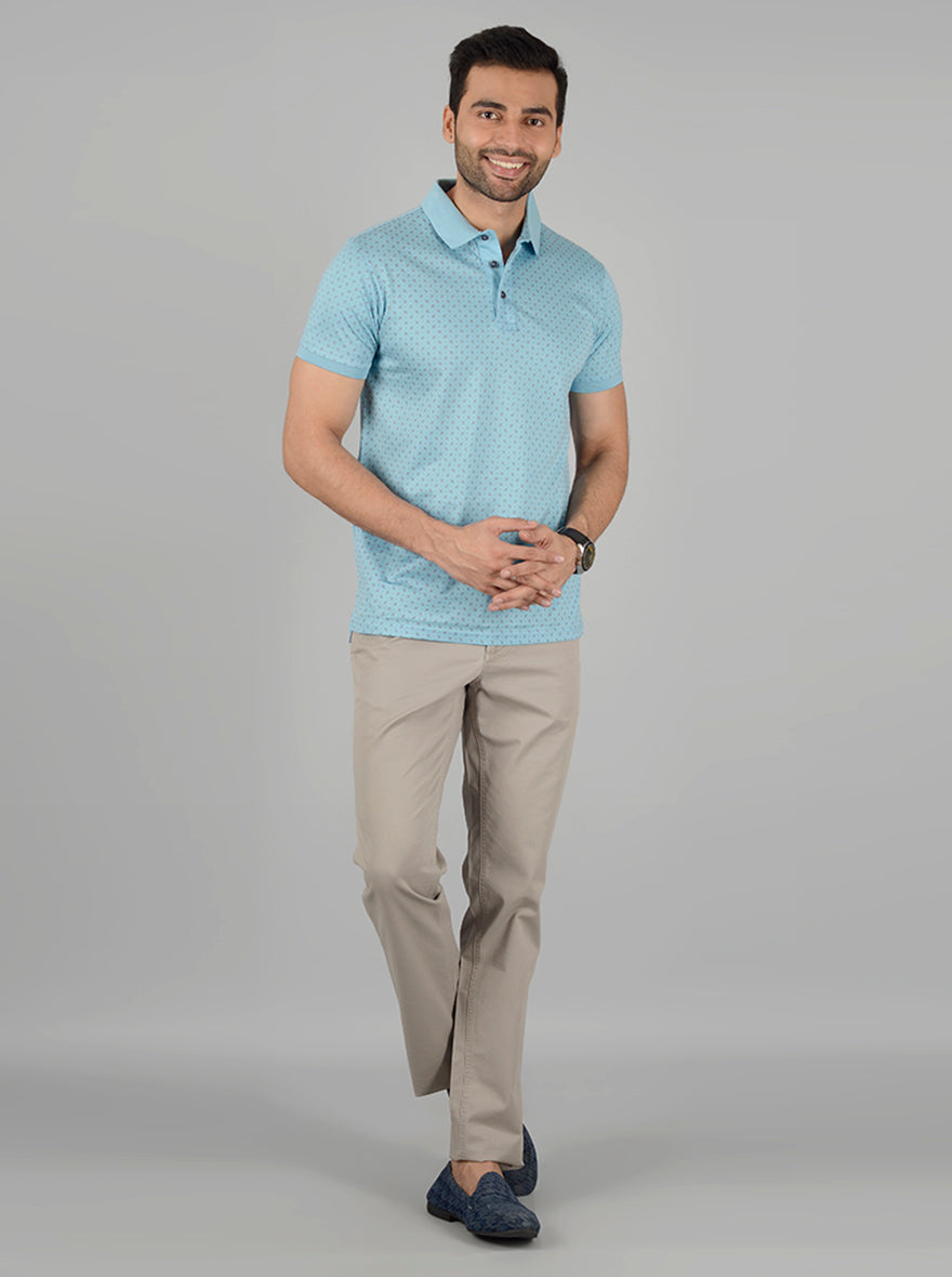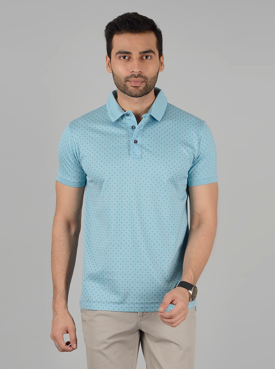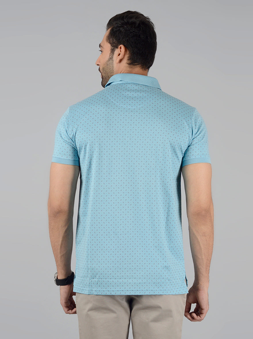 Sky Blue Printed Slim Fit Polo T-Shirt | JadeBlue