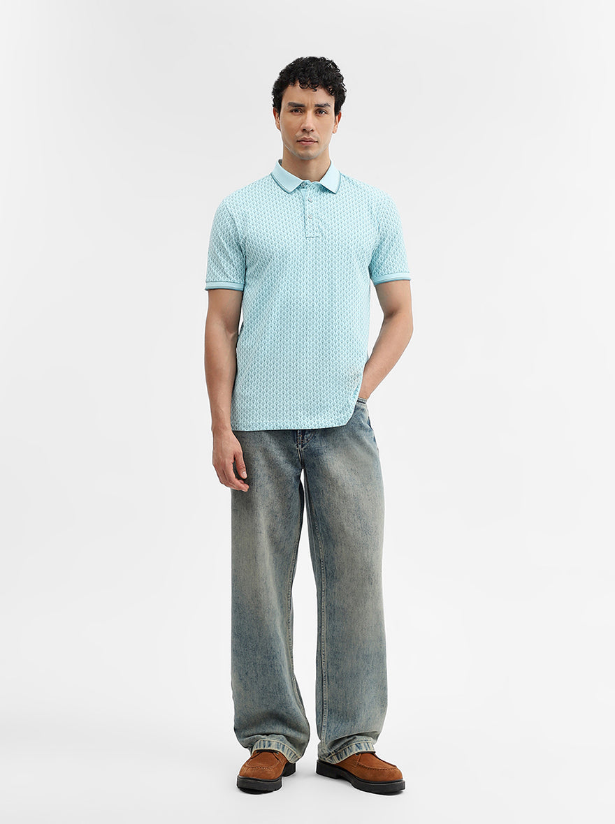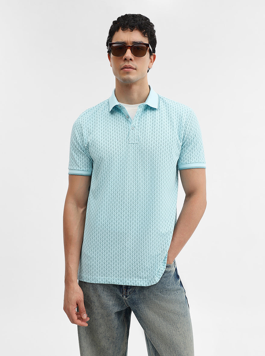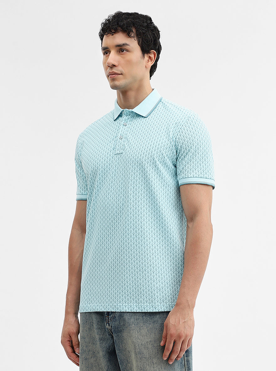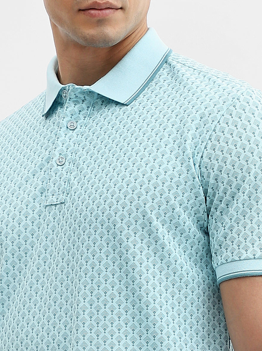 Sky Blue Printed Slim Fit Polo T-Shirt | JadeBlue