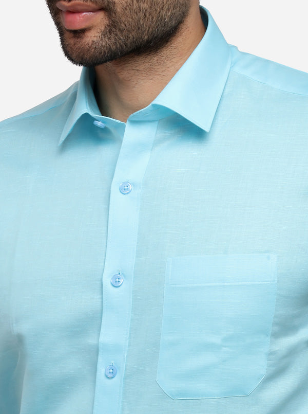Sky Blue Solid Regular Fit Formal Shirt | JadeBlue