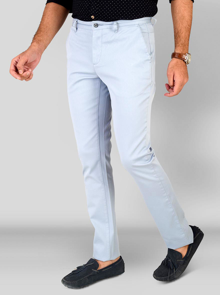 Sky Blue Self Textured Super Slim Fit Chinos | Greenfibre