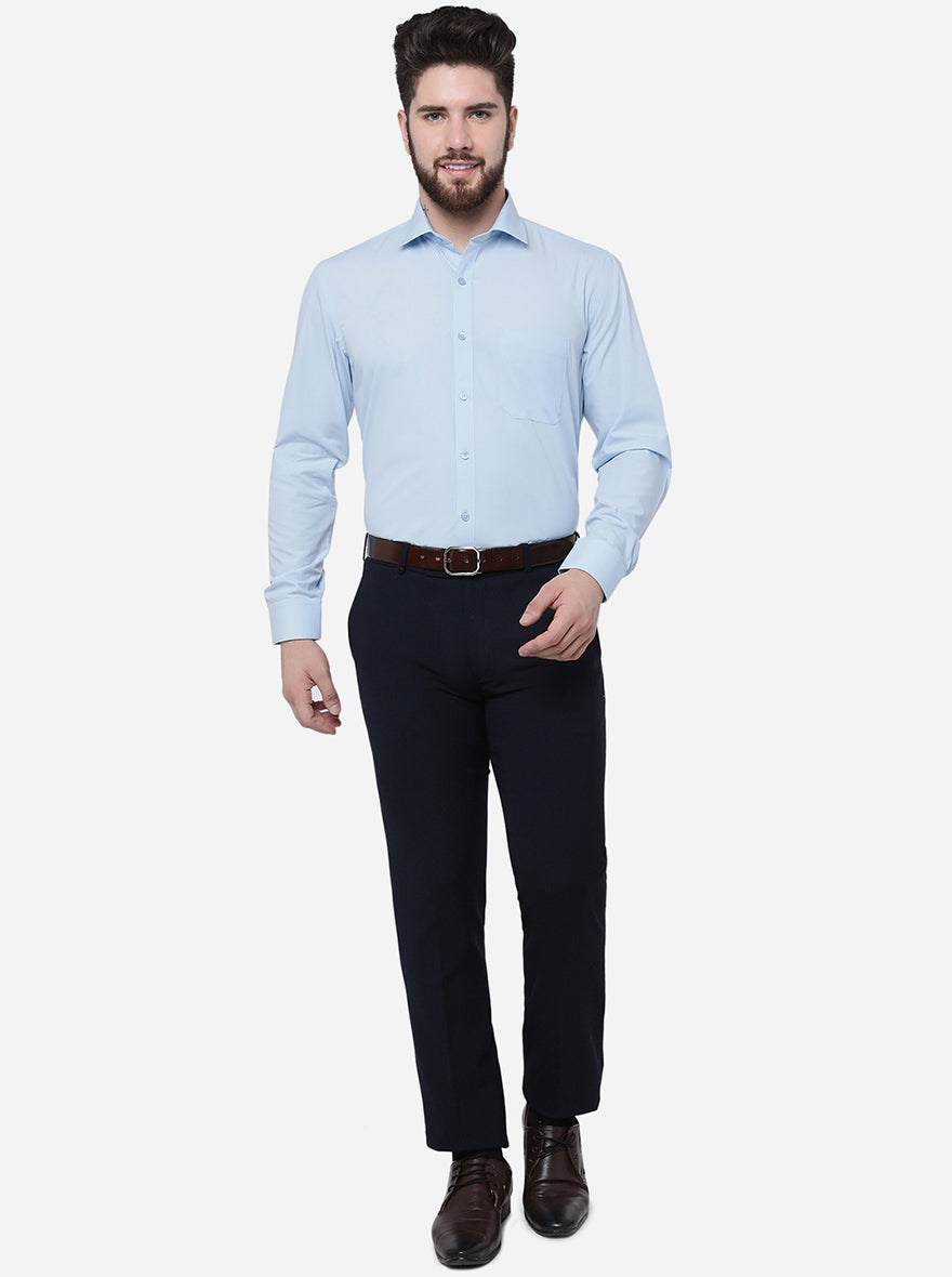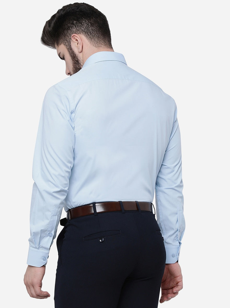 Sky Blue Solid Regular Fit Formal Shirt | Greenfibre