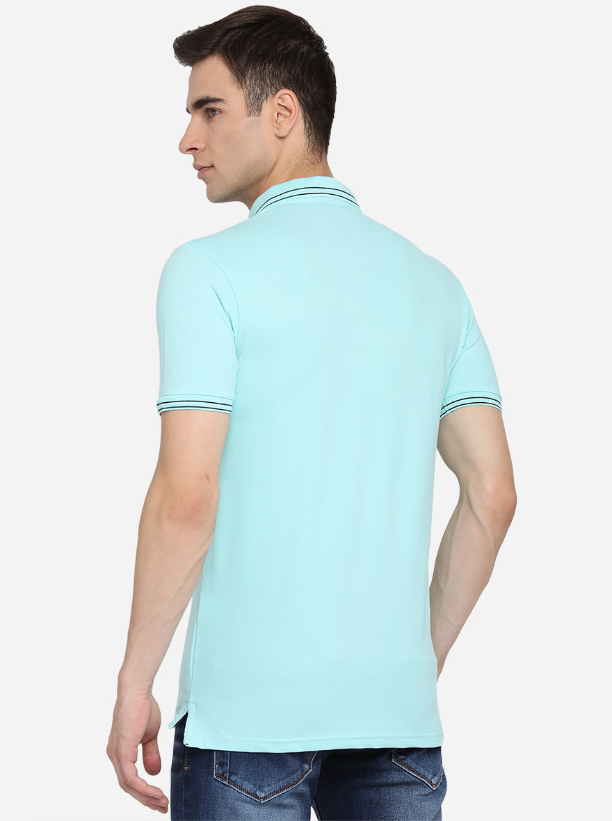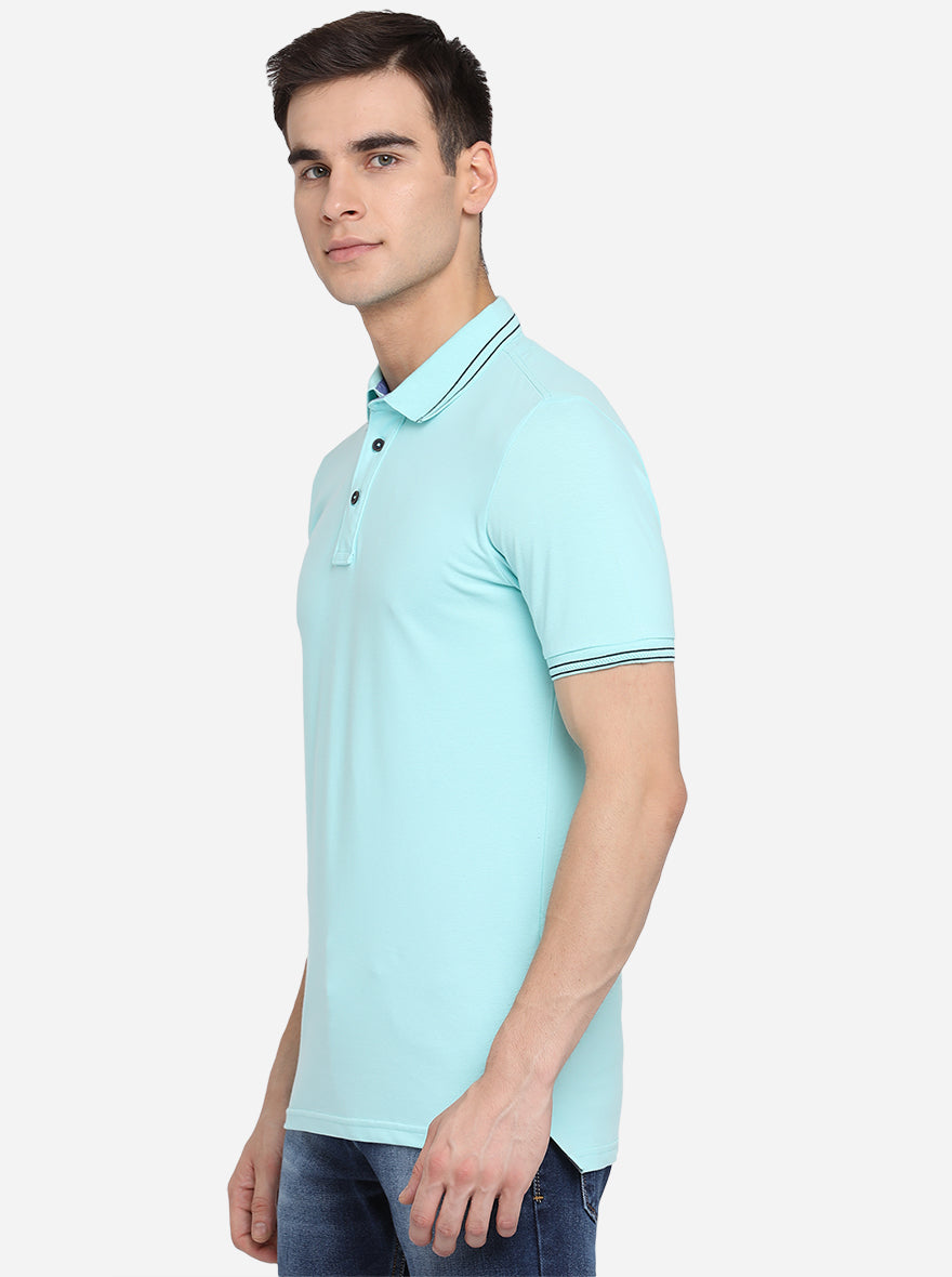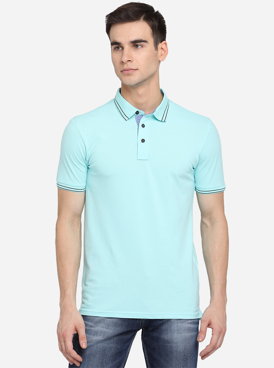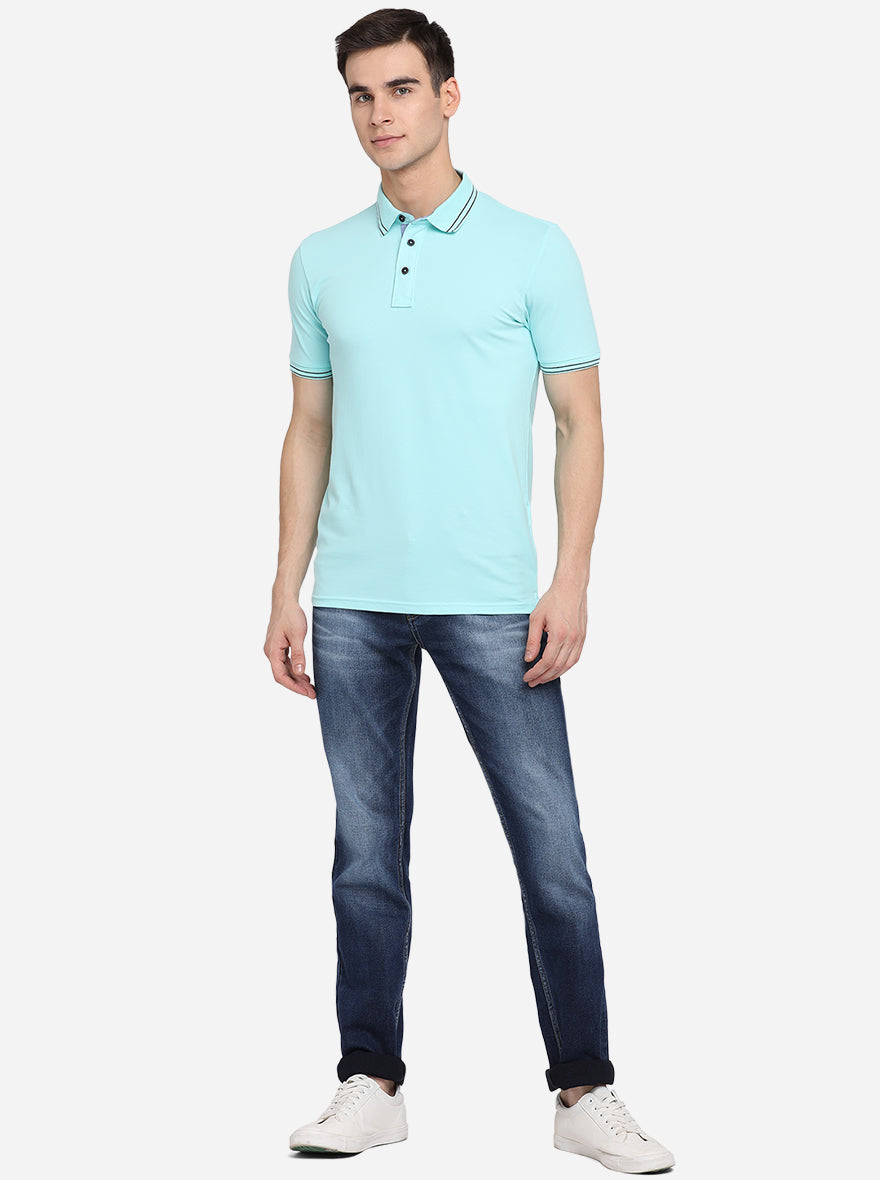 Sky Blue Solid Slim Fit Polo T-Shirt | JadeBlue