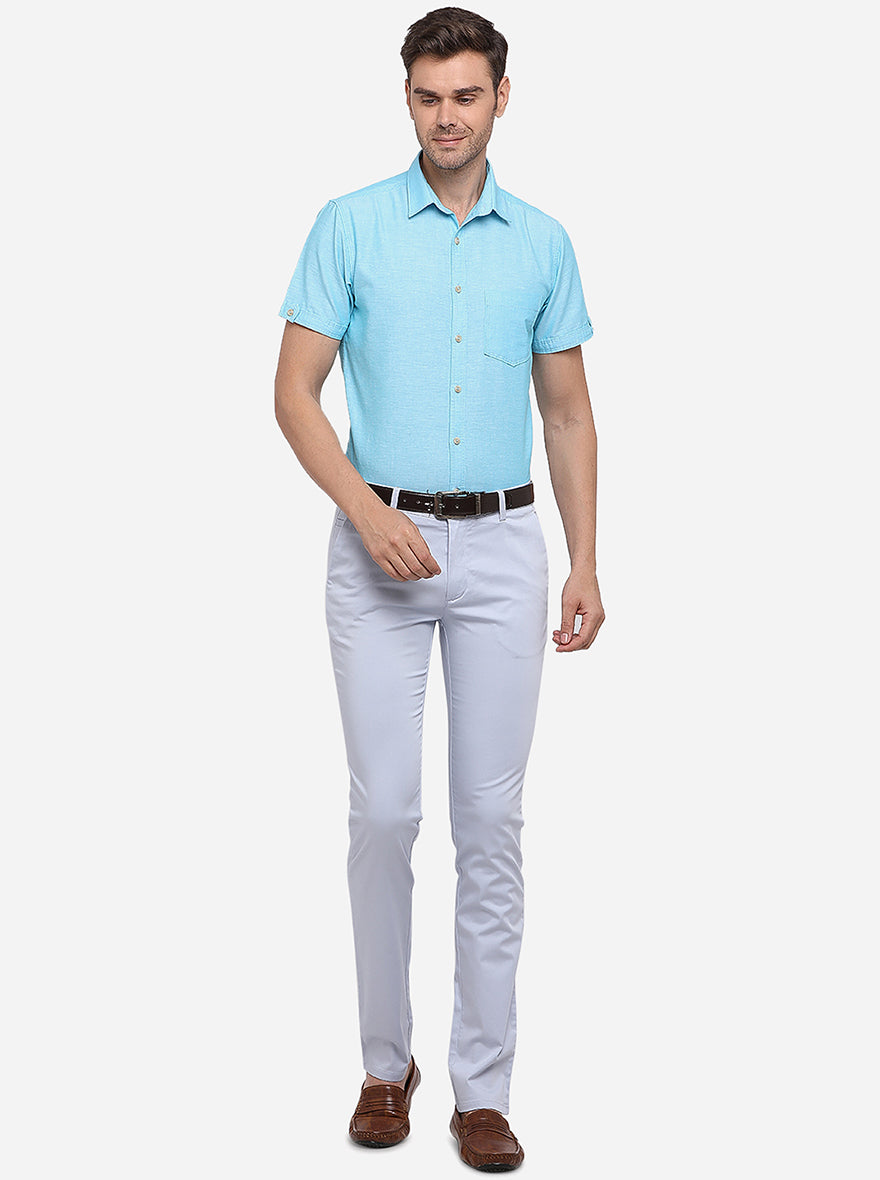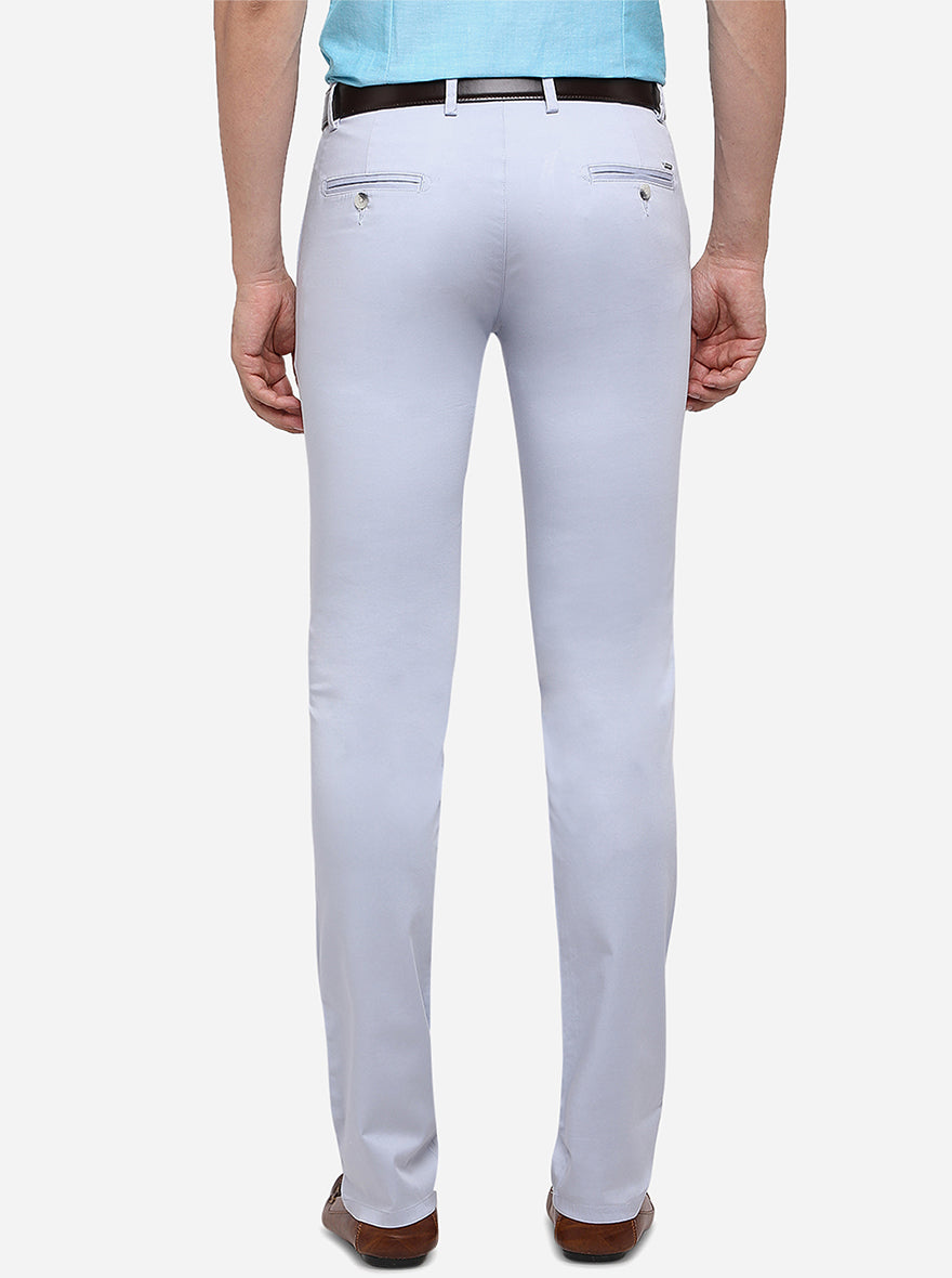 Sky Blue Solid Super Slim Fit Casual Trouser | Greenfibre