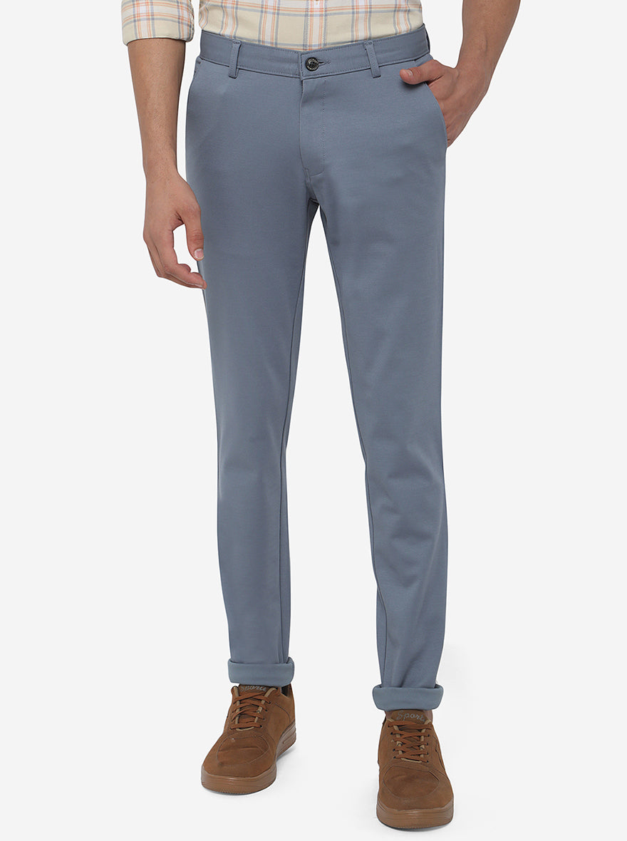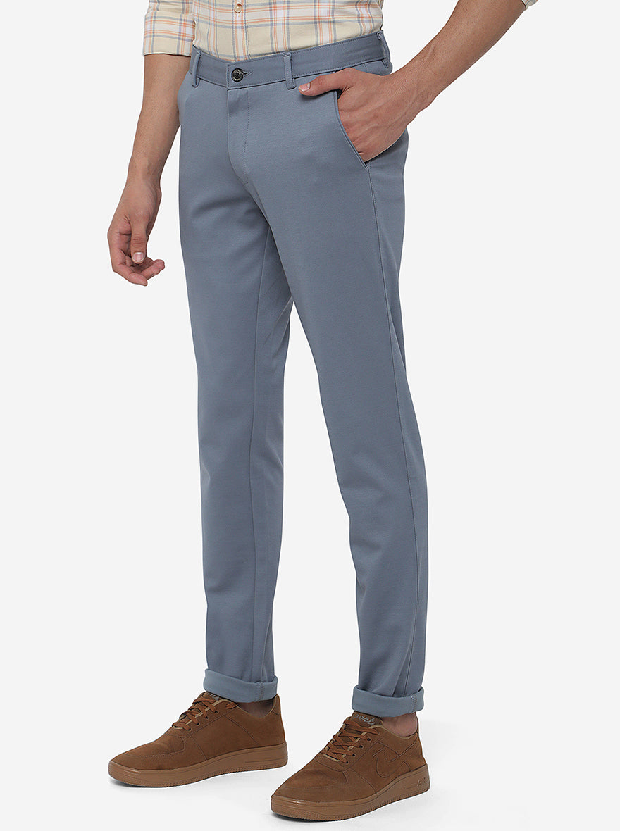 Sky Blue Solid Venice Fit Casual Trouser | JadeBlue