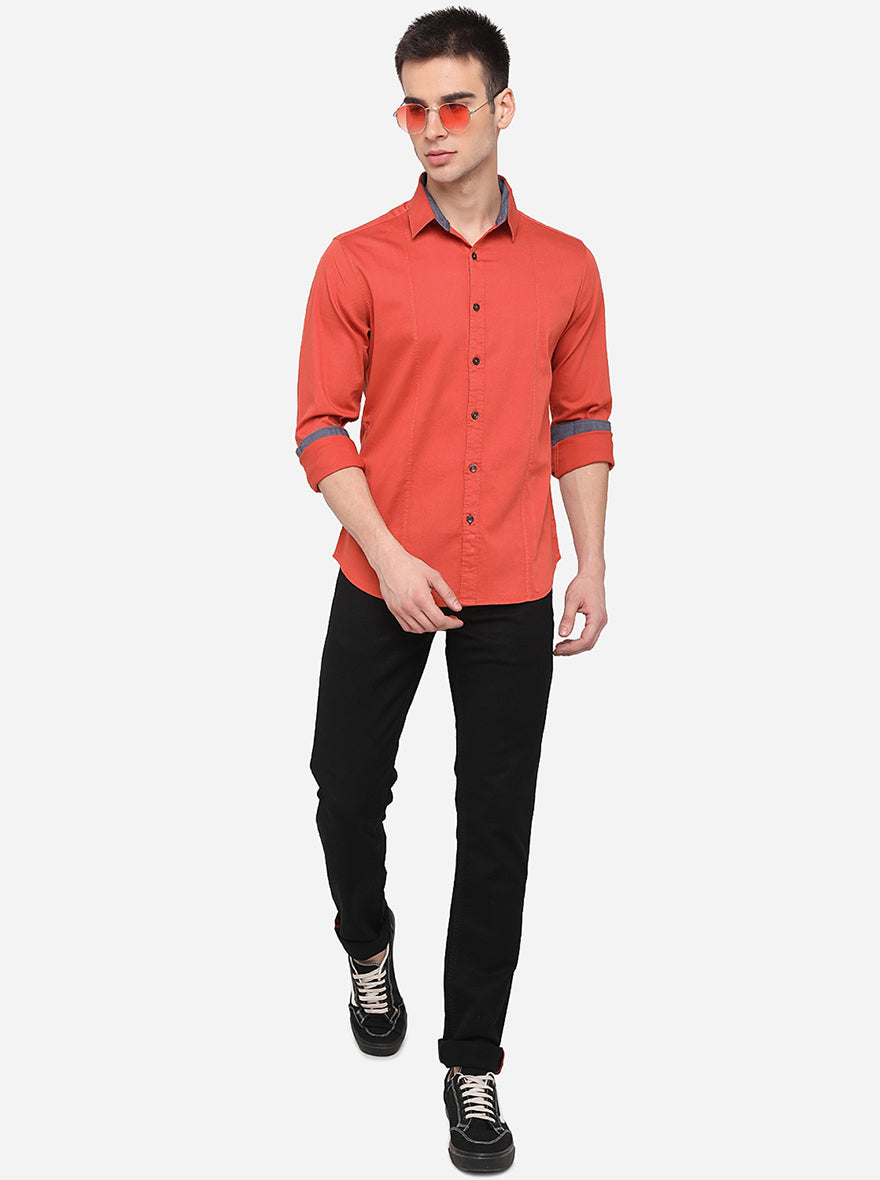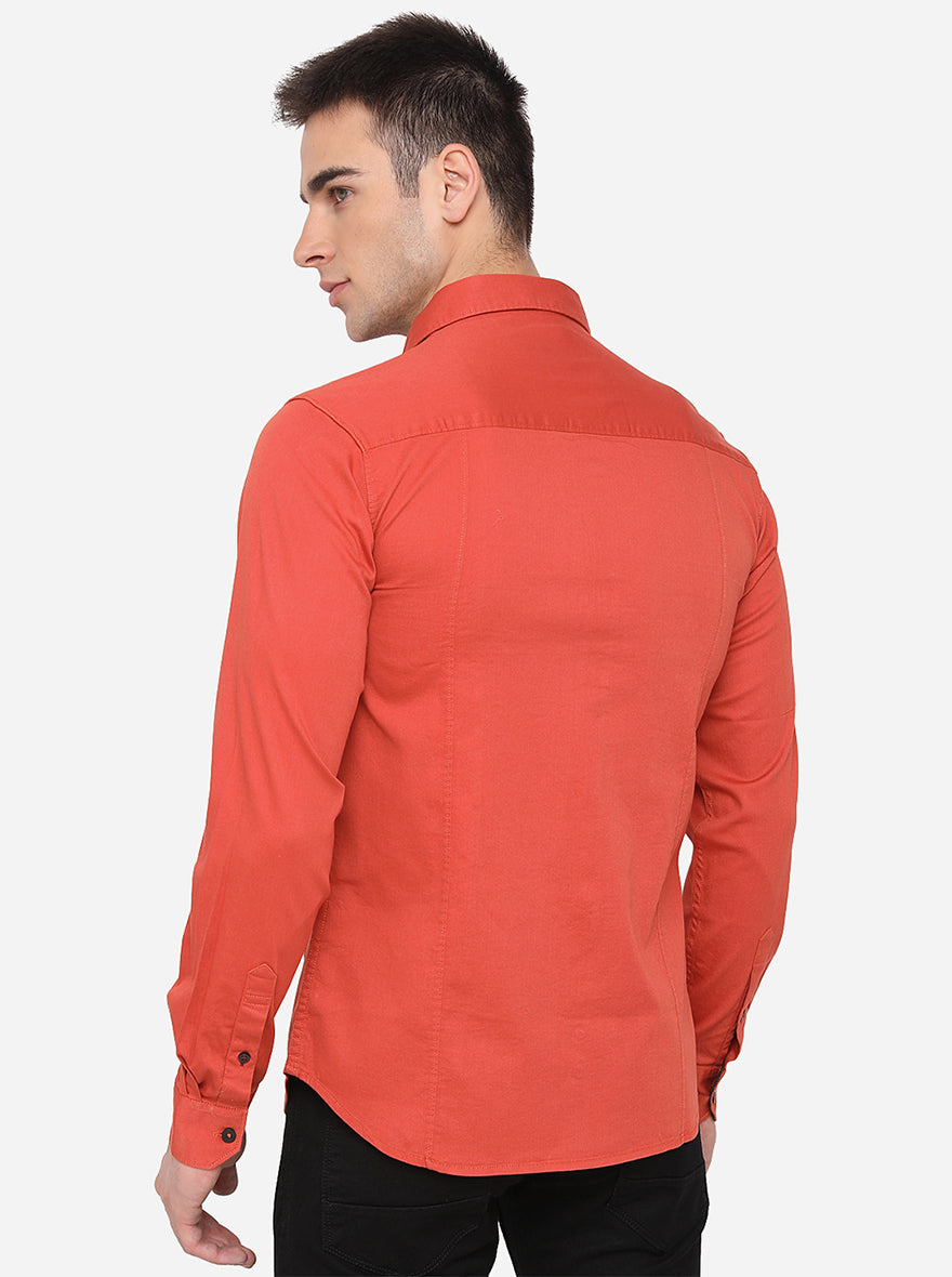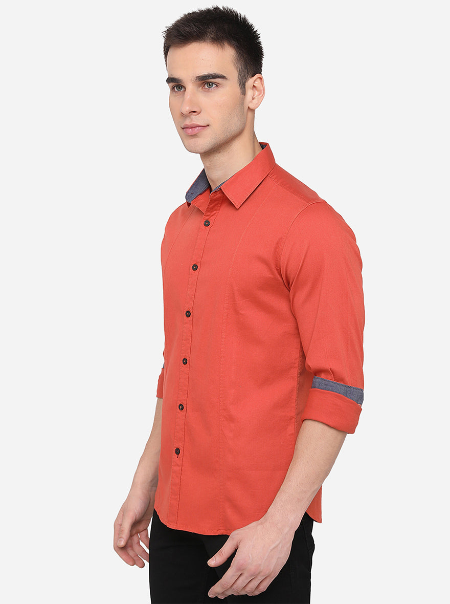Spicy Orange Solid Slim Fit Casual Shirt | Greenfibre