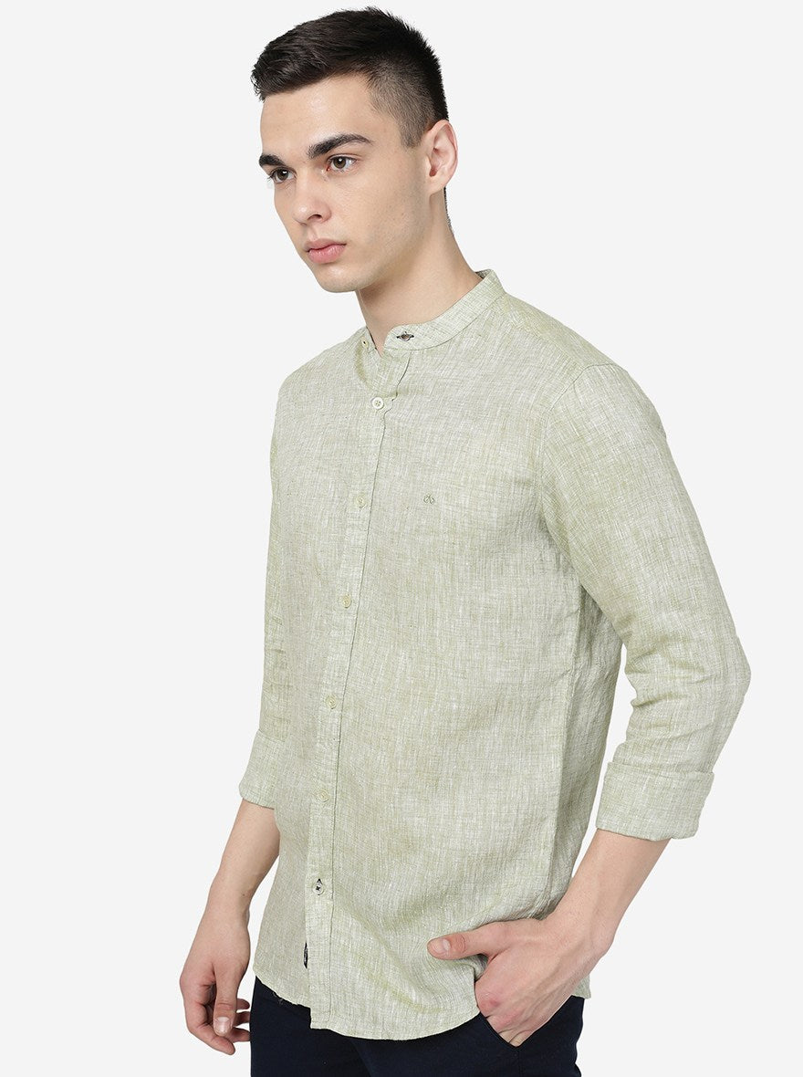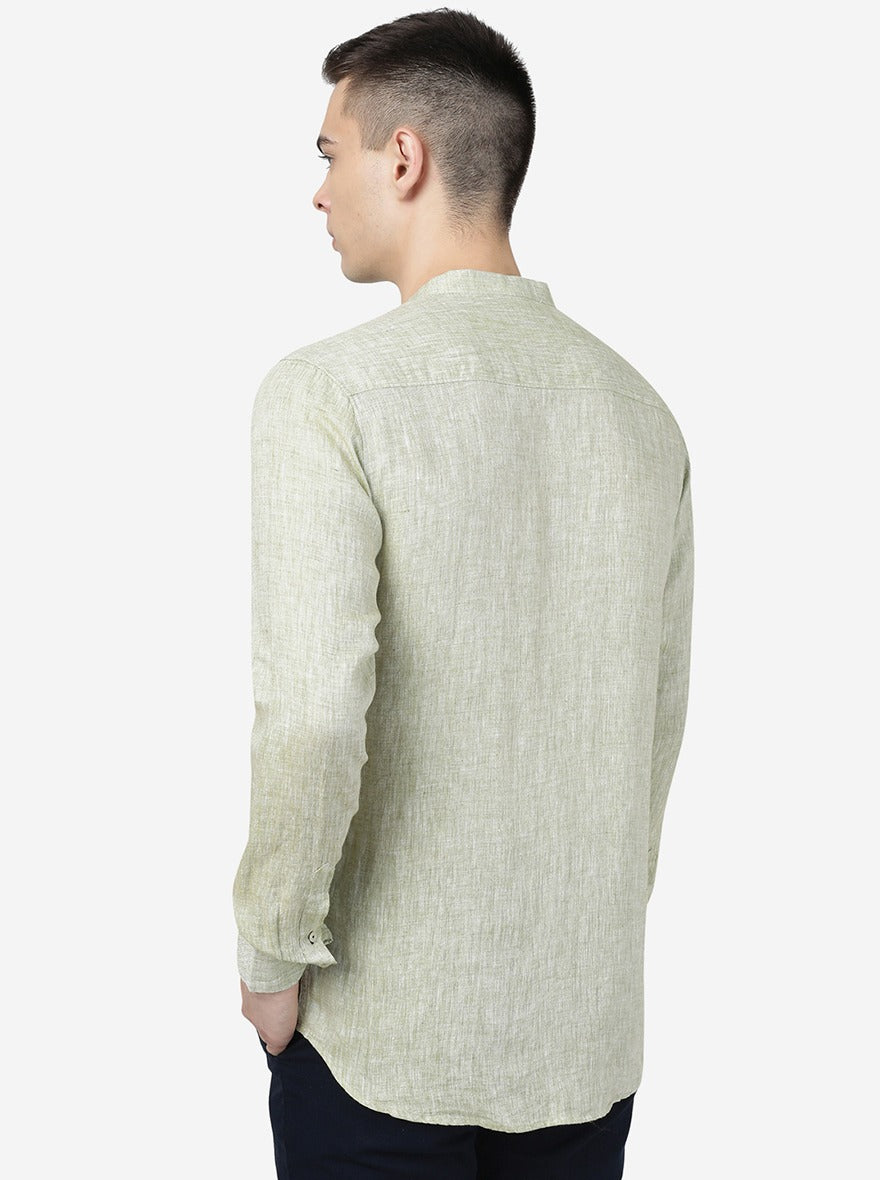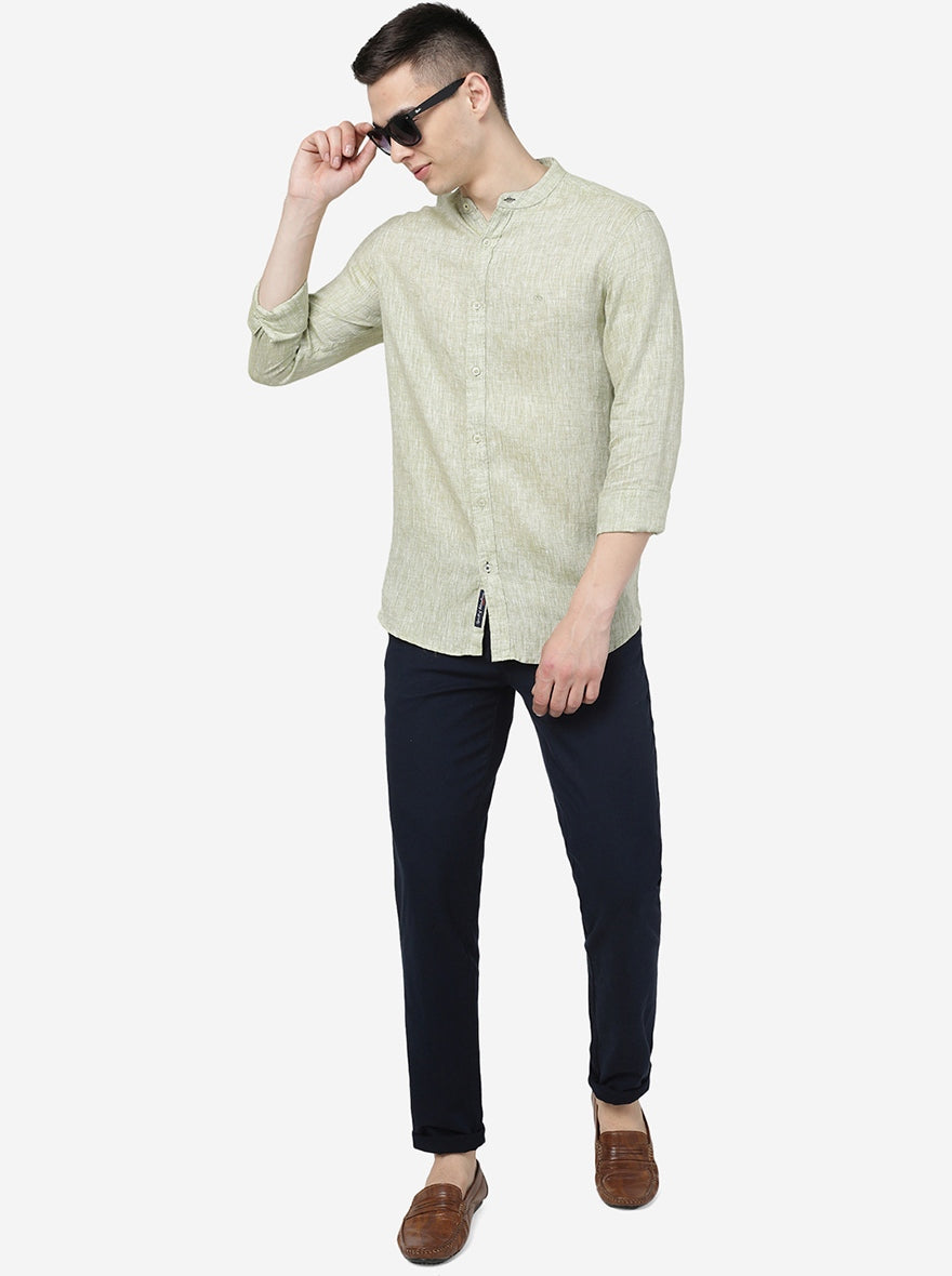 Details: Bring back this unique colour with this Spinach Green 100% Linen Semi Casual Shirt from JadeBlue. Fabricated with 100% Linen fabric ensuring comfort and breathability all day. Offers a slim fit for a sleek look that has been elevated with a Solid pattern. Feature Full sleeves, and a Mandarin shirt collar. Match it with the well-fitted trousers of your choice and a pair of Black oxford shoes and you are ready to go.