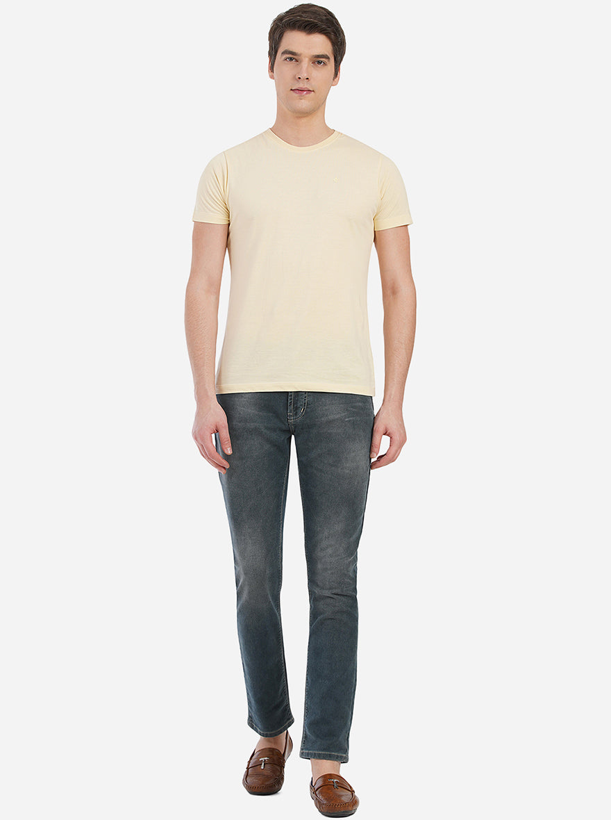Details: Look stylish and comfortable wearing this washed state gray jeans by JadeBlue. This slim fit pair of jeans is tailored using good quality of cotton stretch fabric and promises great wearing comfort to you. It has certain features like single button closure, zip fly fastening, 2 front pockets and 2 rear pockets, metal trims, embossed logo and belt loops, which gives it a functional touch. This casual wear will look great when clubbed with a contrast printed T-shirt, suede loafers and watch for a fabulous casual look.