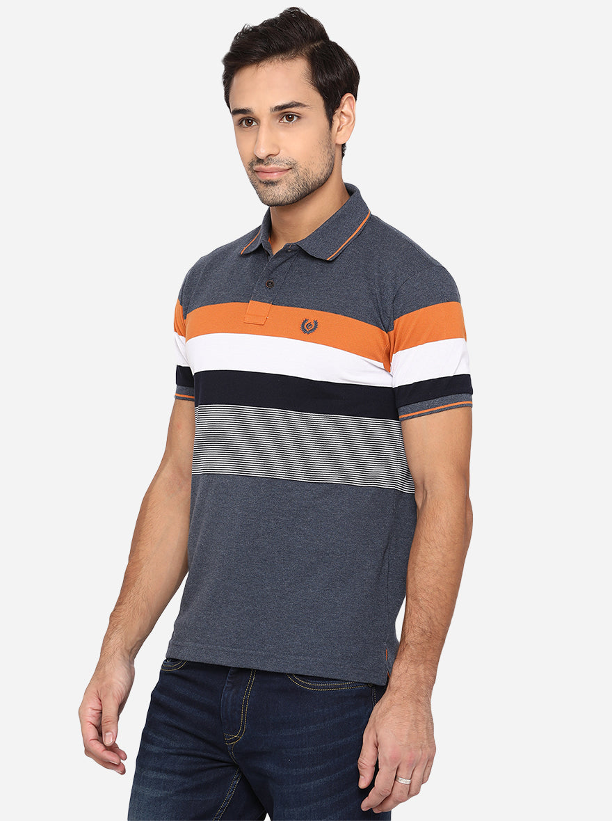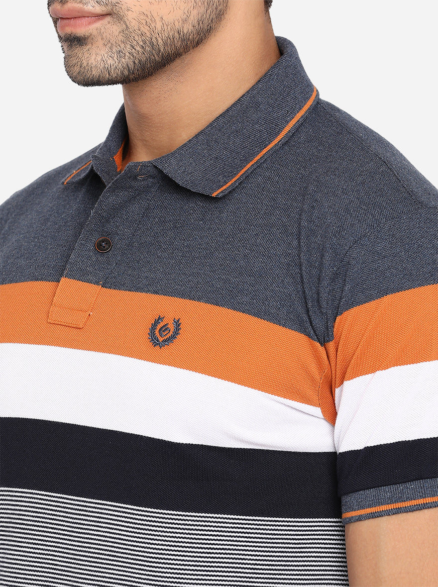 Steel Grey Striped Slim Fit Polo T-Shirt | Greenfibre