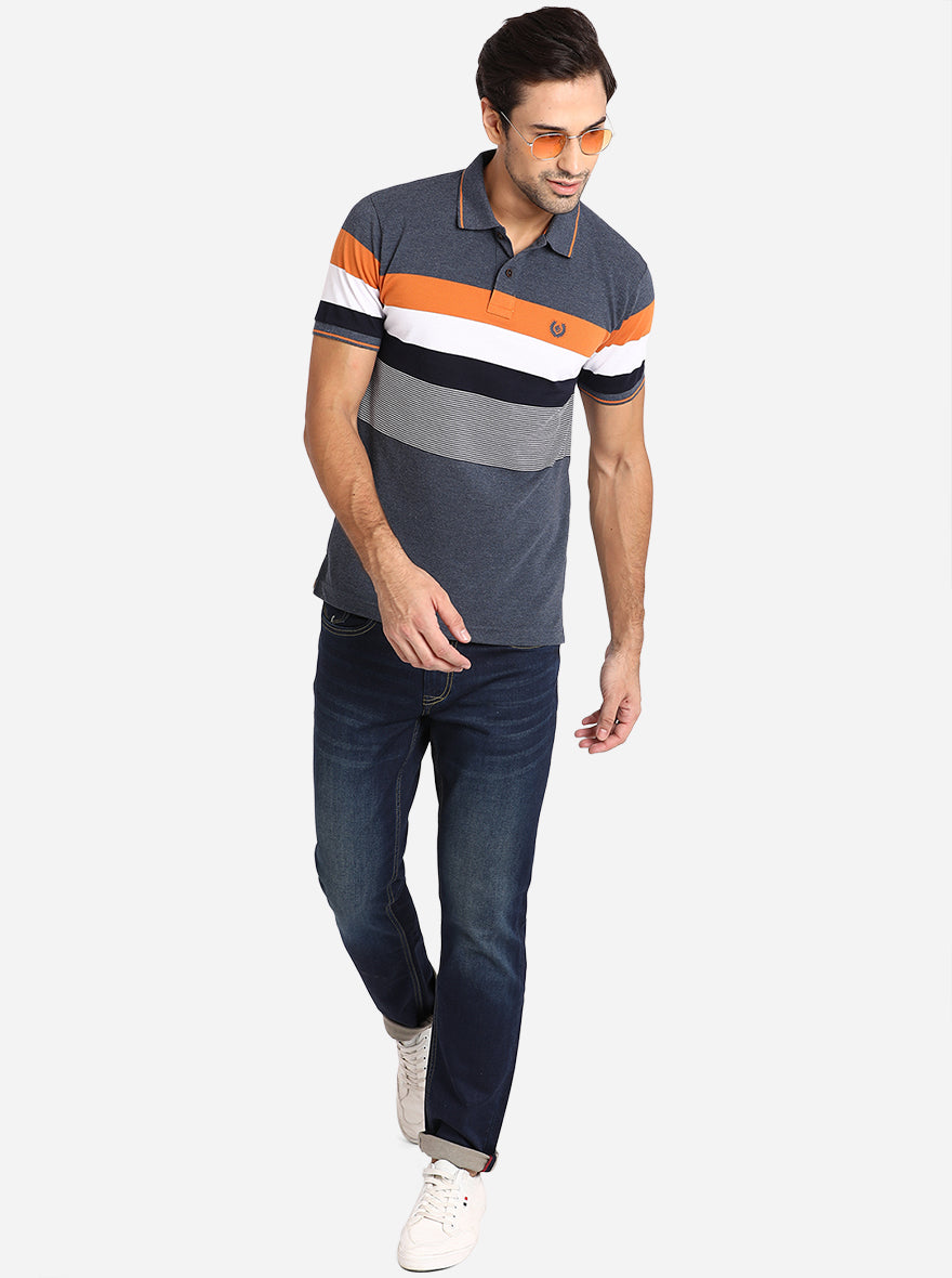 Details: Stay updated with the latest trends by investing in this dapper Steel Grey polo t-shirt from the latest collection of Greenfibre. Featuring a polo neck, half-sleeves, and offers a slim-fit. It is adorned with a stripe printed pattern, making up for a versatile closet. Crafted with cotton blend, it ensures the best of comfort during long hours. Perfect for weekend wear and casual wear. Match it with a pair of well-fitted jeans and classy sneakers to achieve the desired look.