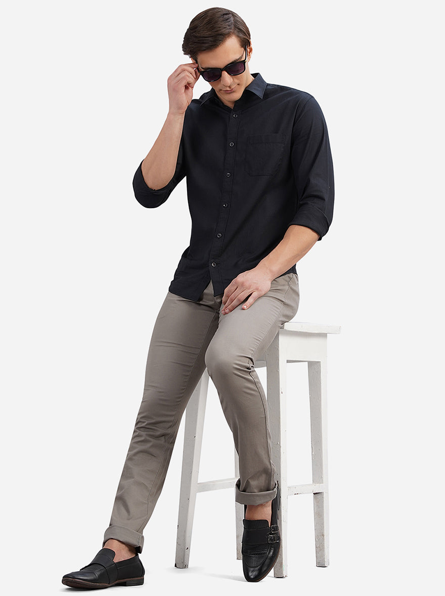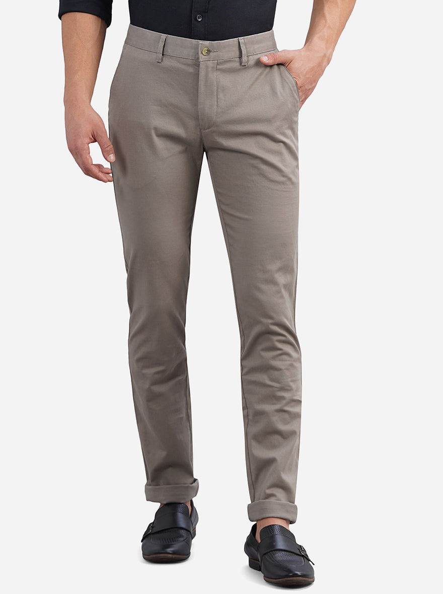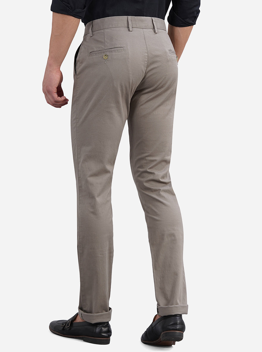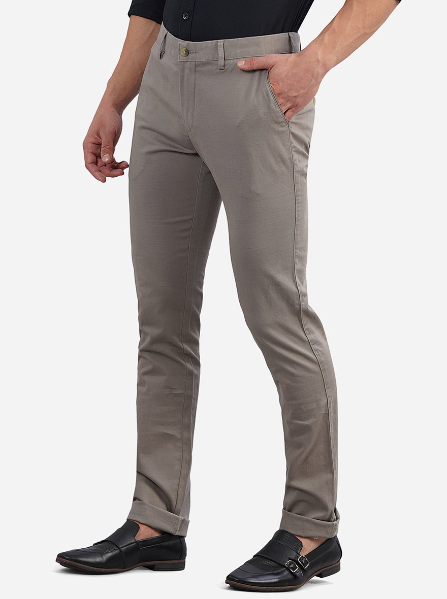 Stone Grey Solid Super Slim Fit Casual Trouser | Greenfibre