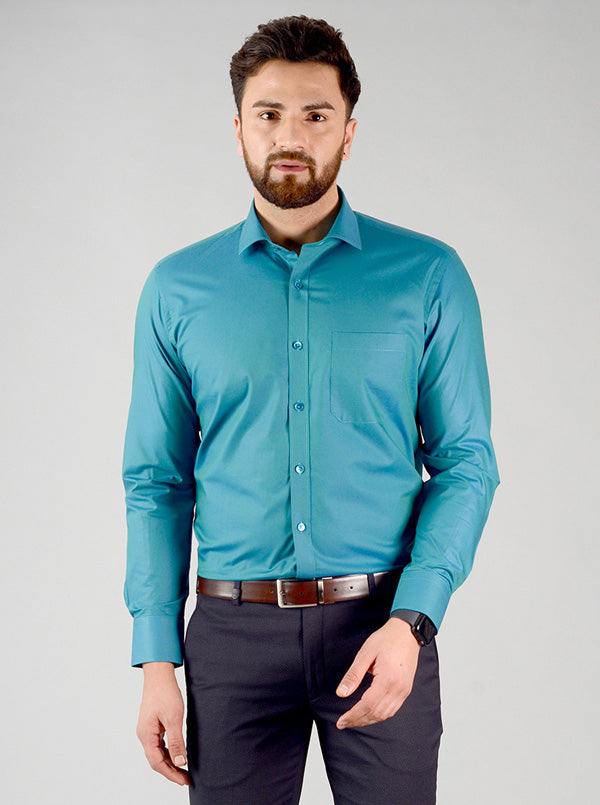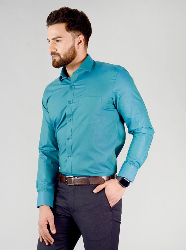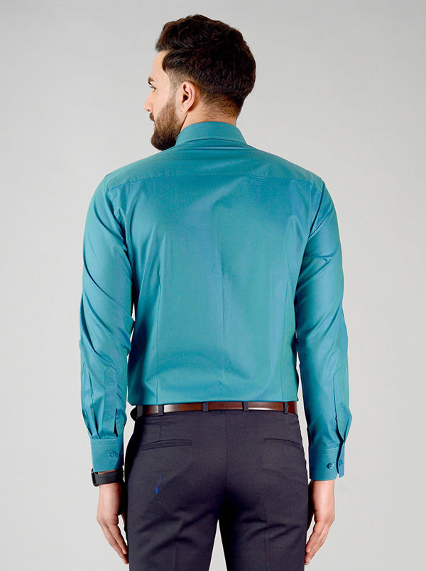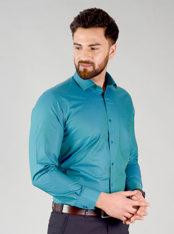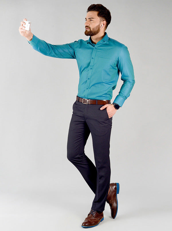 Storm Blue Solid Slim Fit Evening Wear Shirt | Metal
