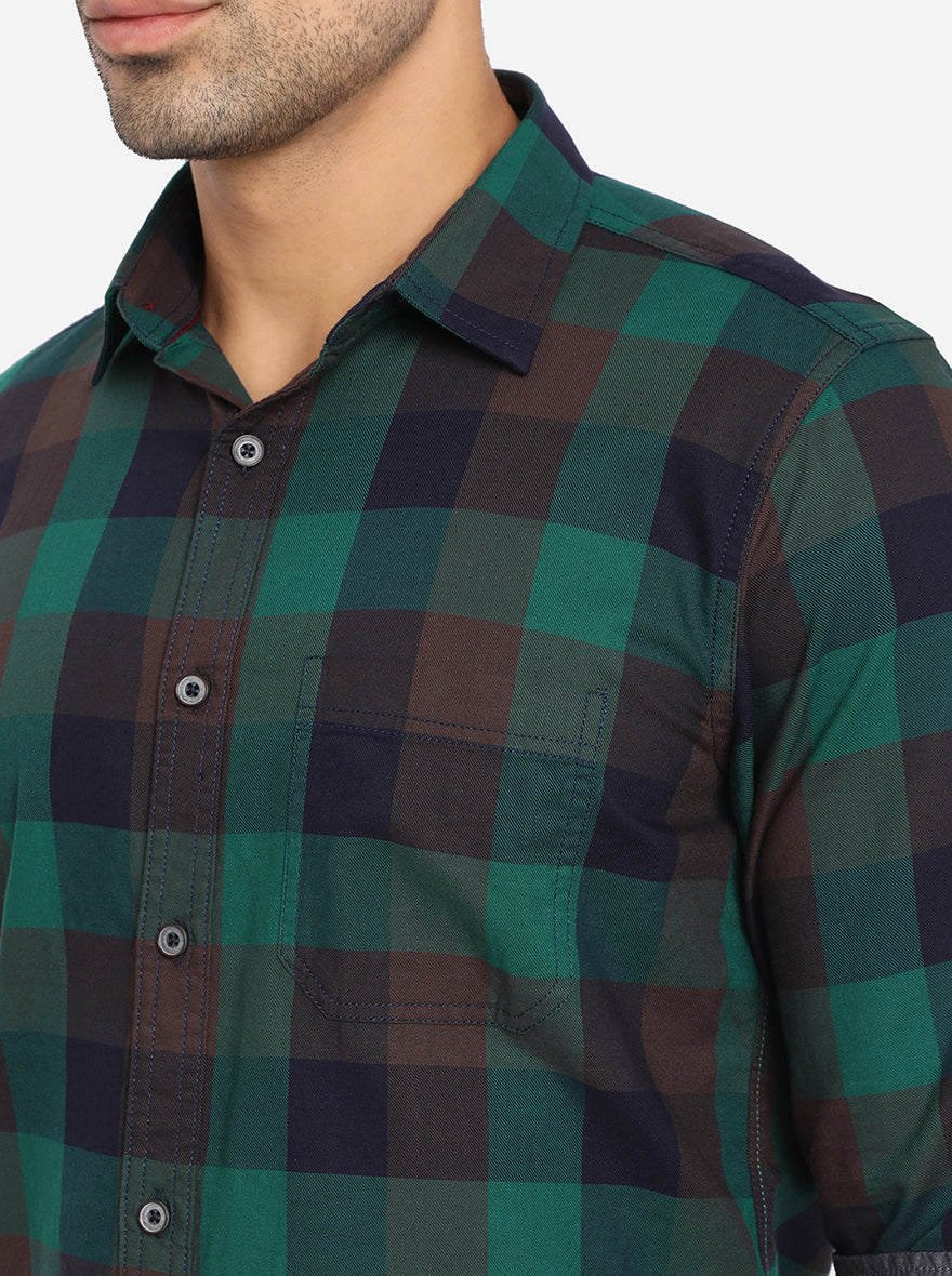Teal Green Checked Slim Fit Semi Casual Shirt | JadeBlue