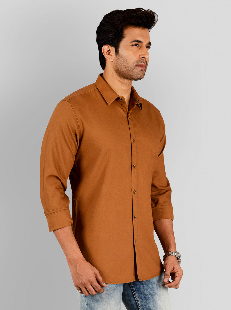 Tobacco Brown Self Textured Slim Fit Casual Shirt | JadeBlue