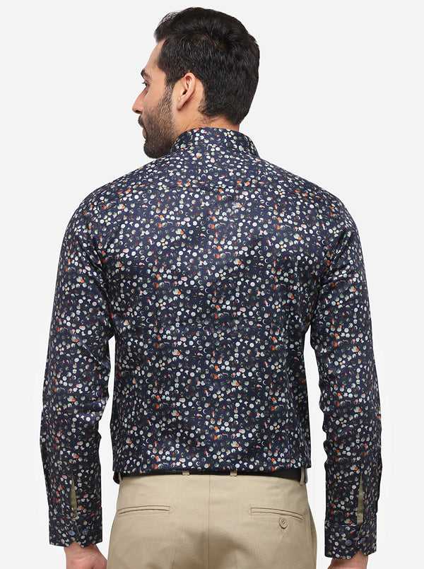 True Navy Printed Slim Fit Party Wear Shirt | Wyre