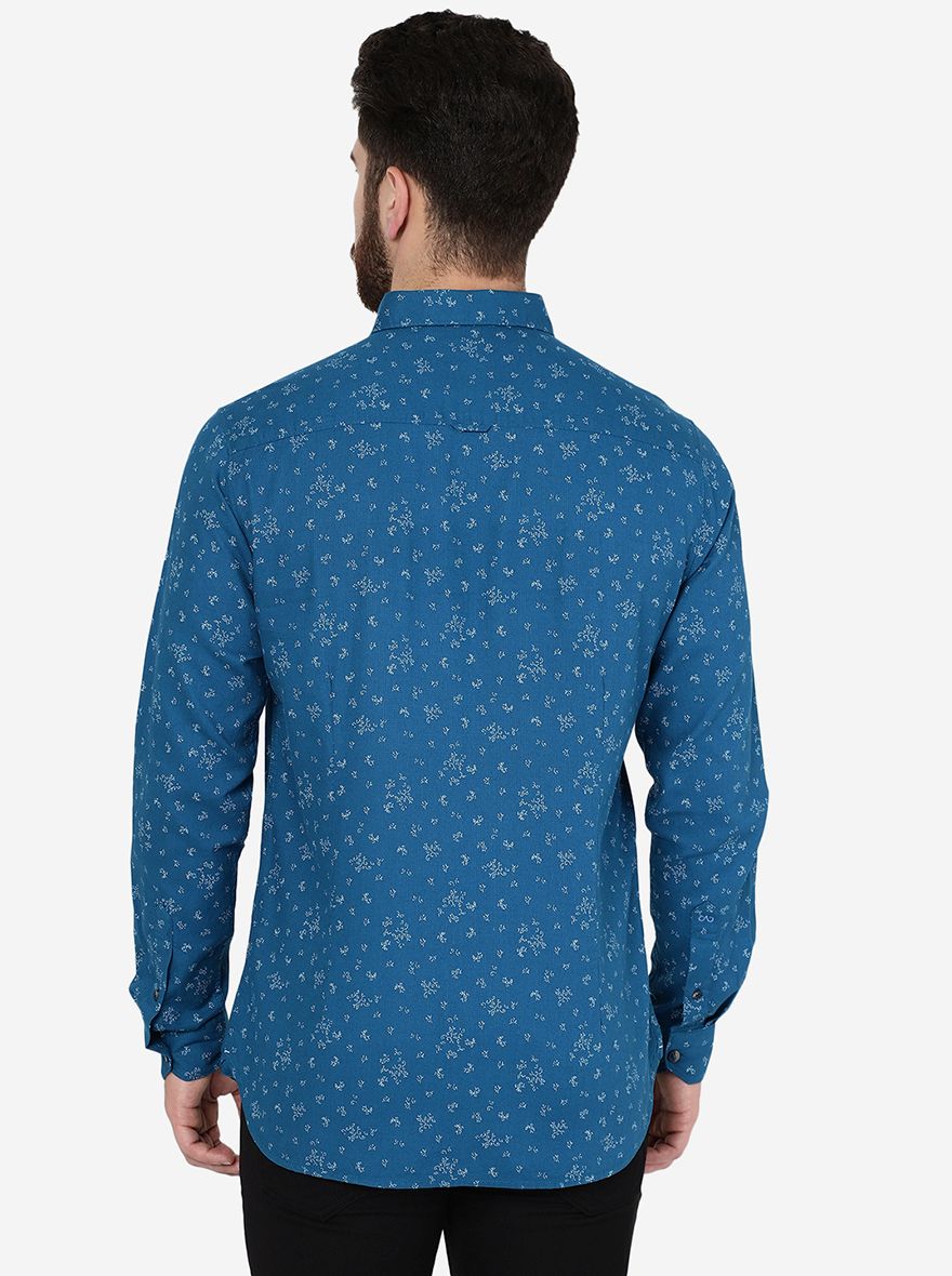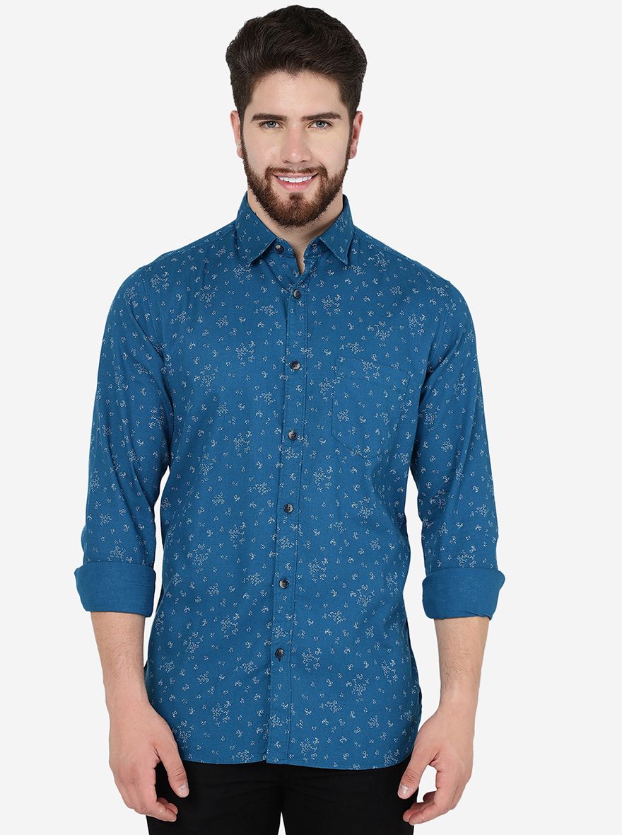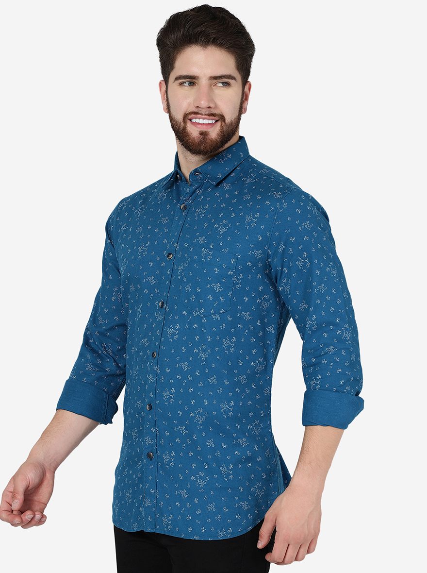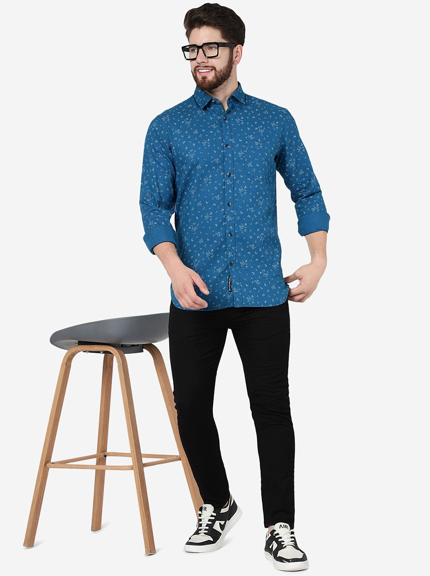 Turquoise Blue Printed Slim Fit Casual Shirt | JadeBlue