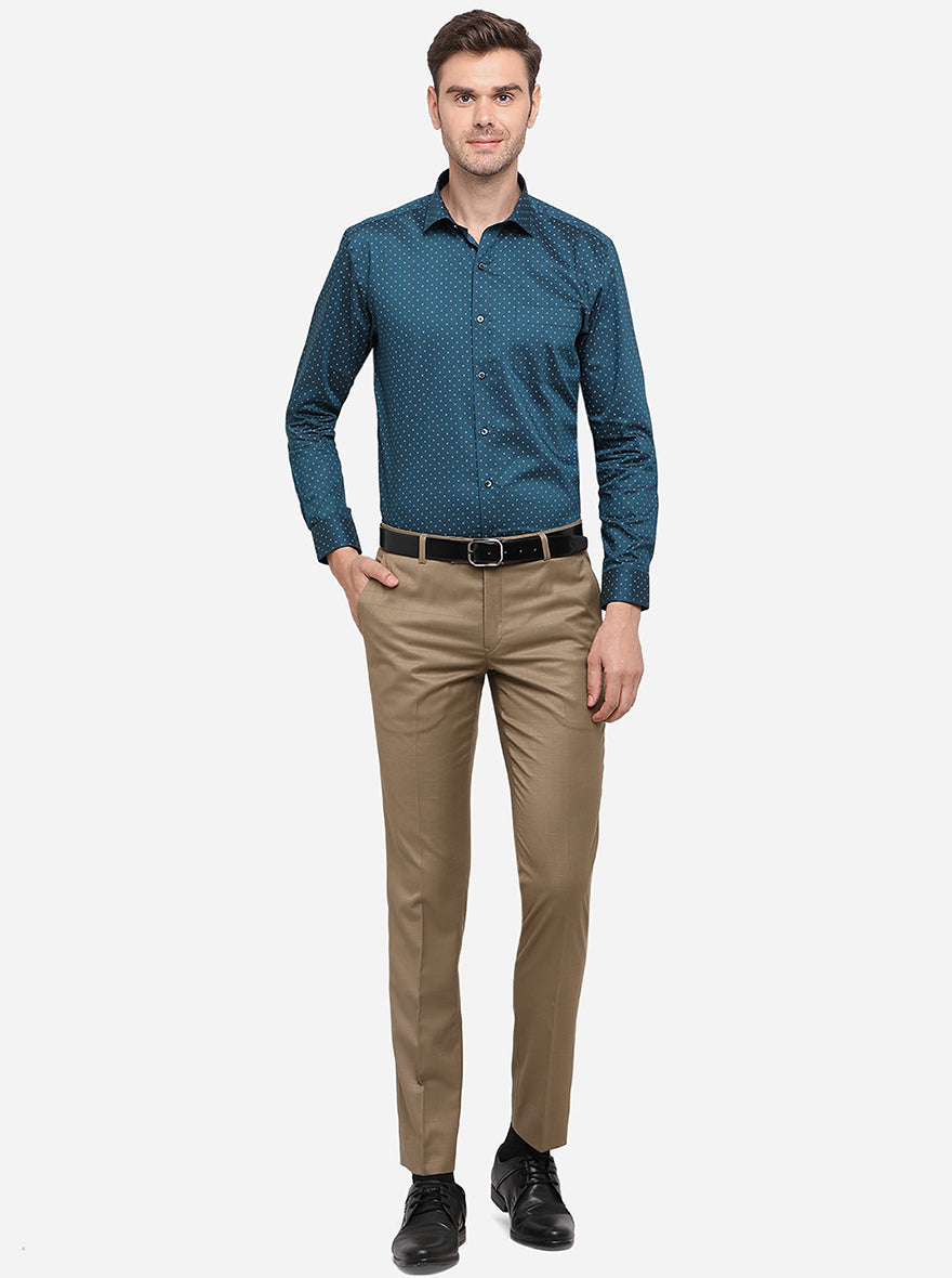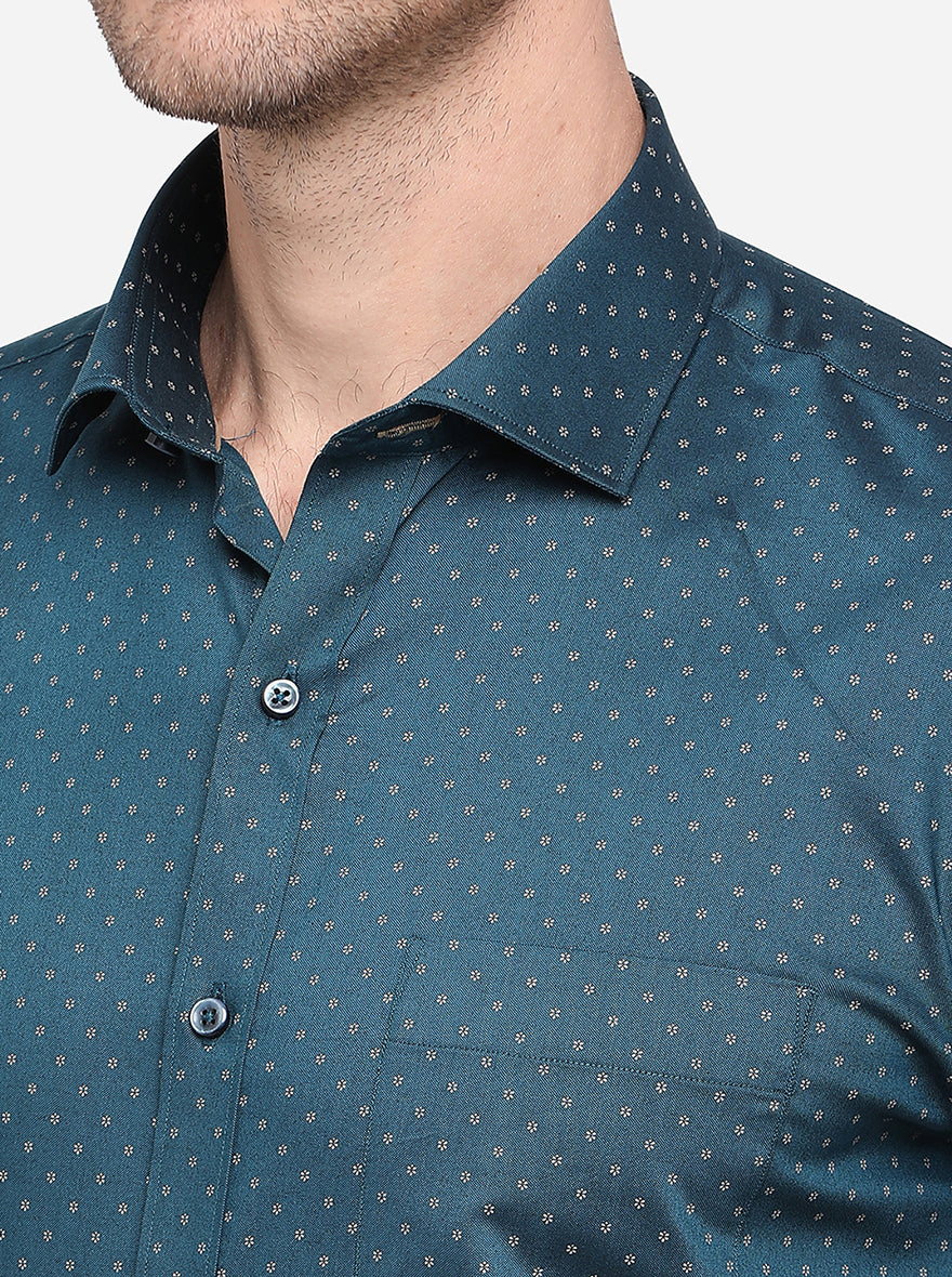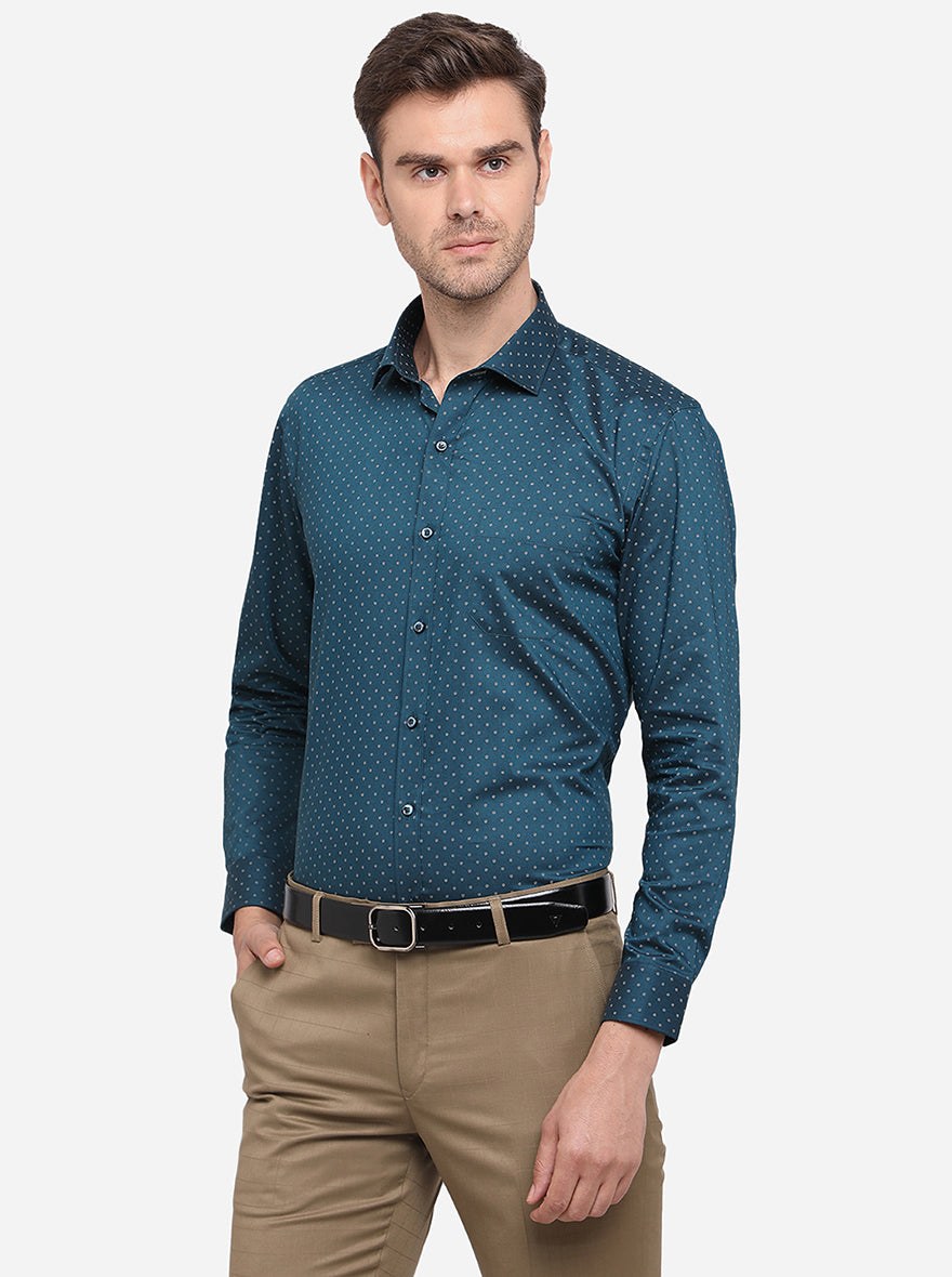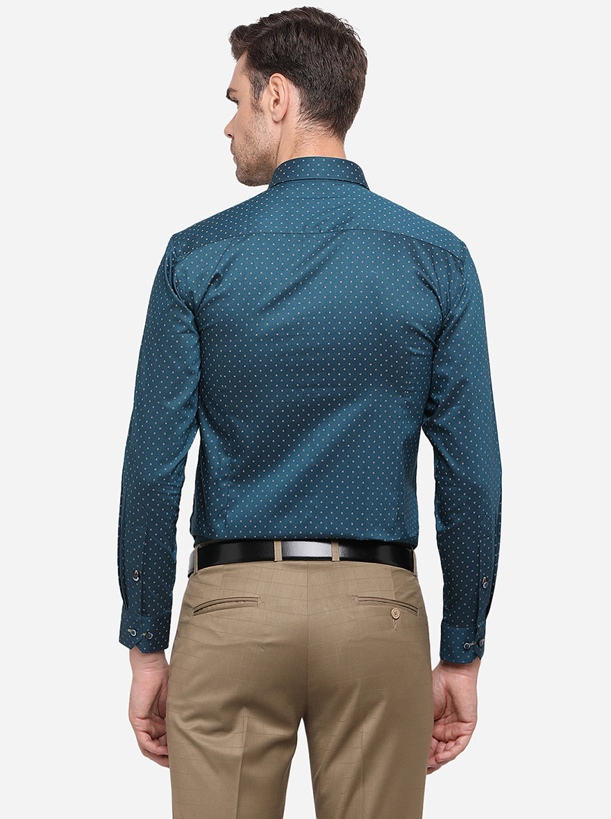 Turquoise Blue Printed Slim Fit Formal Shirt | Greenfibre