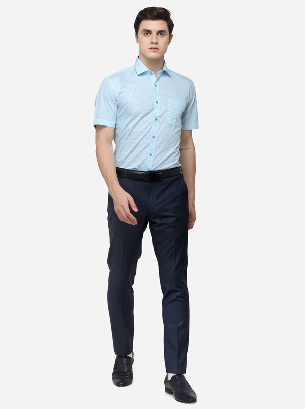 Made to perfection from premium Cotton fabric, this regular fit mens shirt features classic collar, chest pocket and Half sleeve. It offers all-day comfort. Opt for this must-have piece & it offers super relaxation. Revamp your formal shirt collection today by adding this blue mens formal shirt to it.