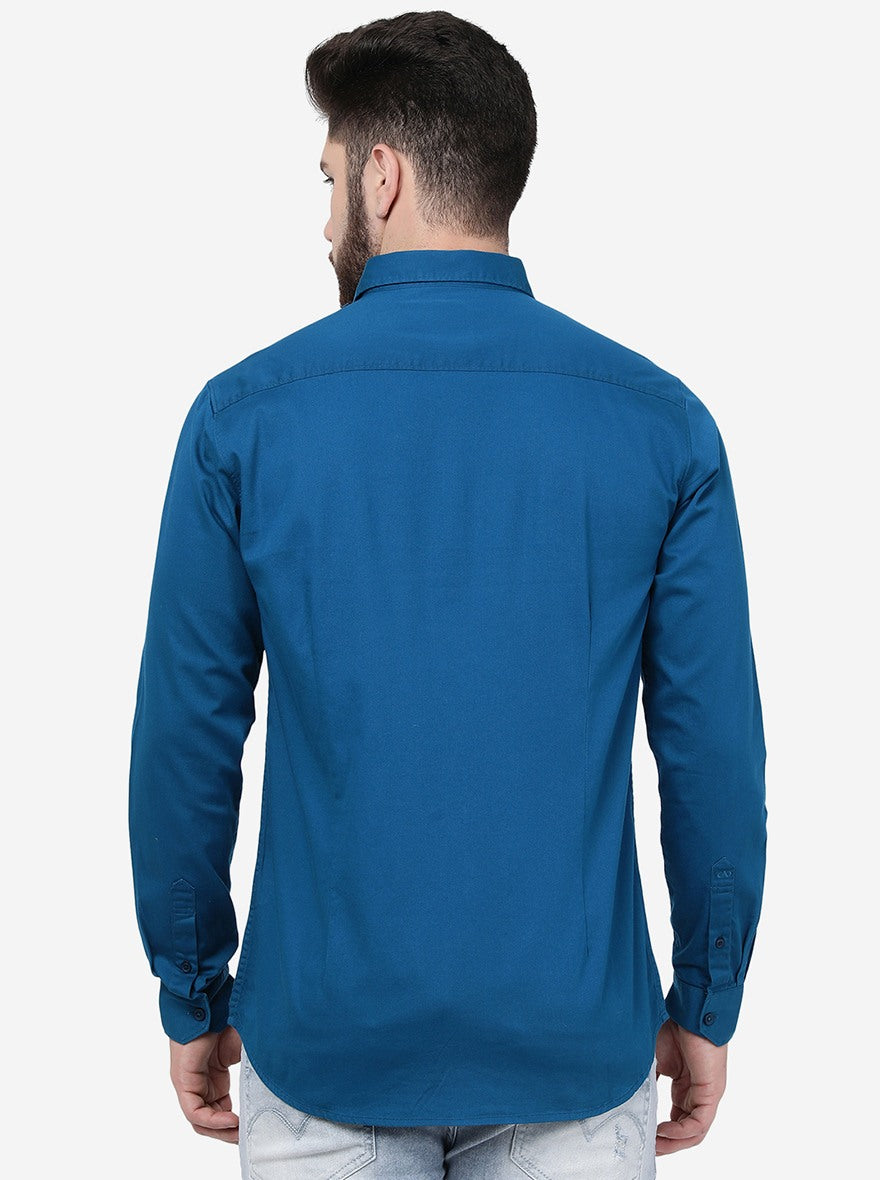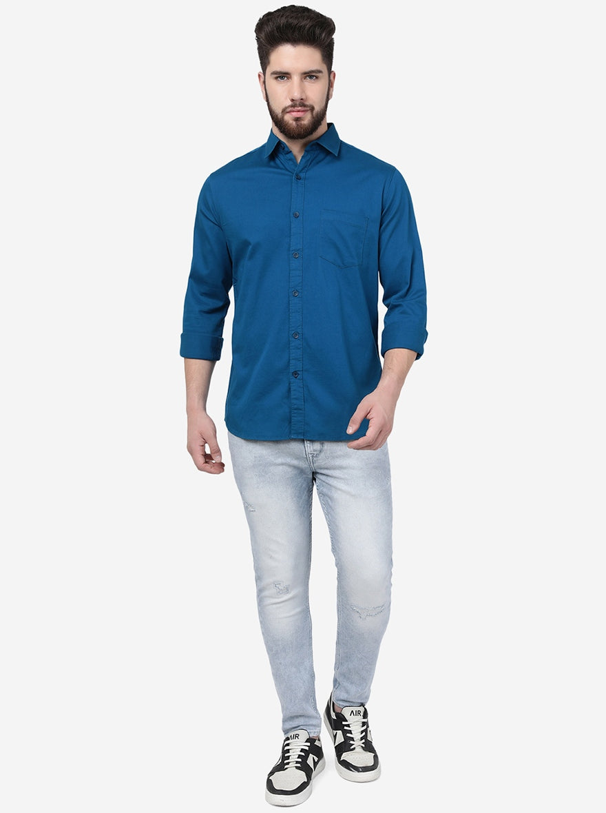 Turquoise Blue Solid Slim Fit Casual Shirt | JadeBlue