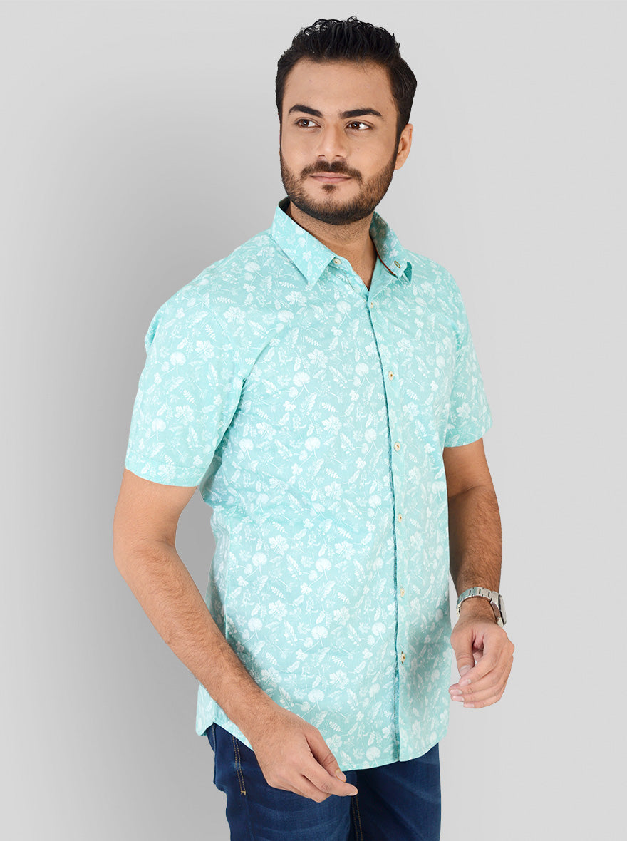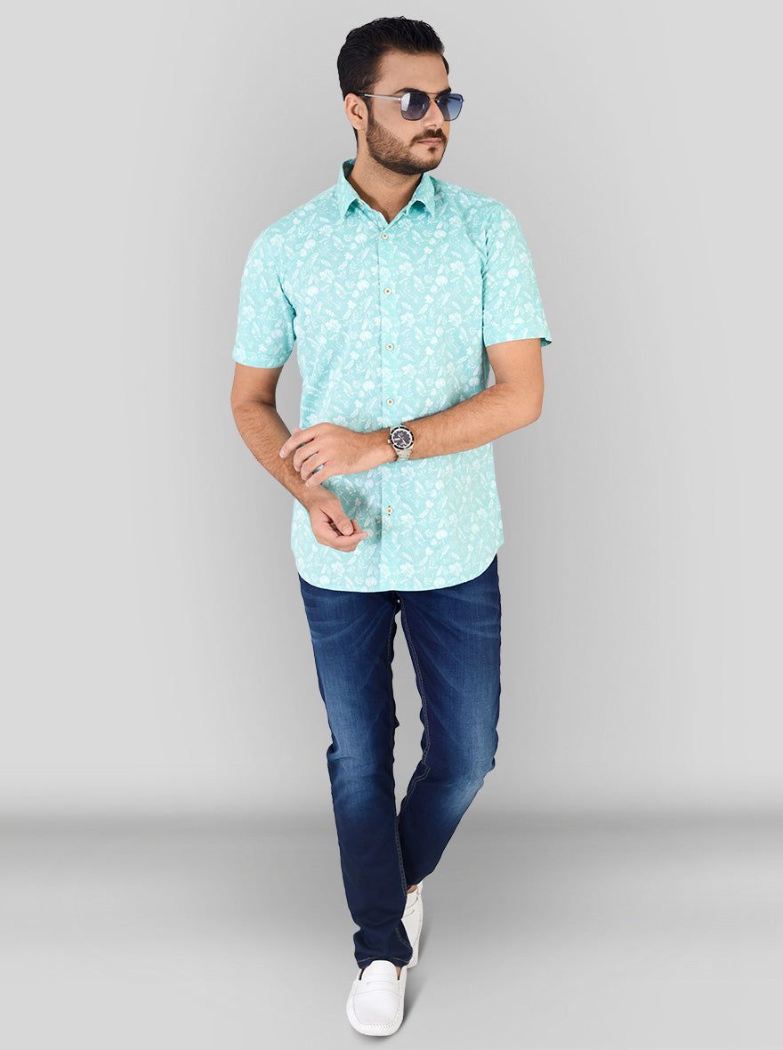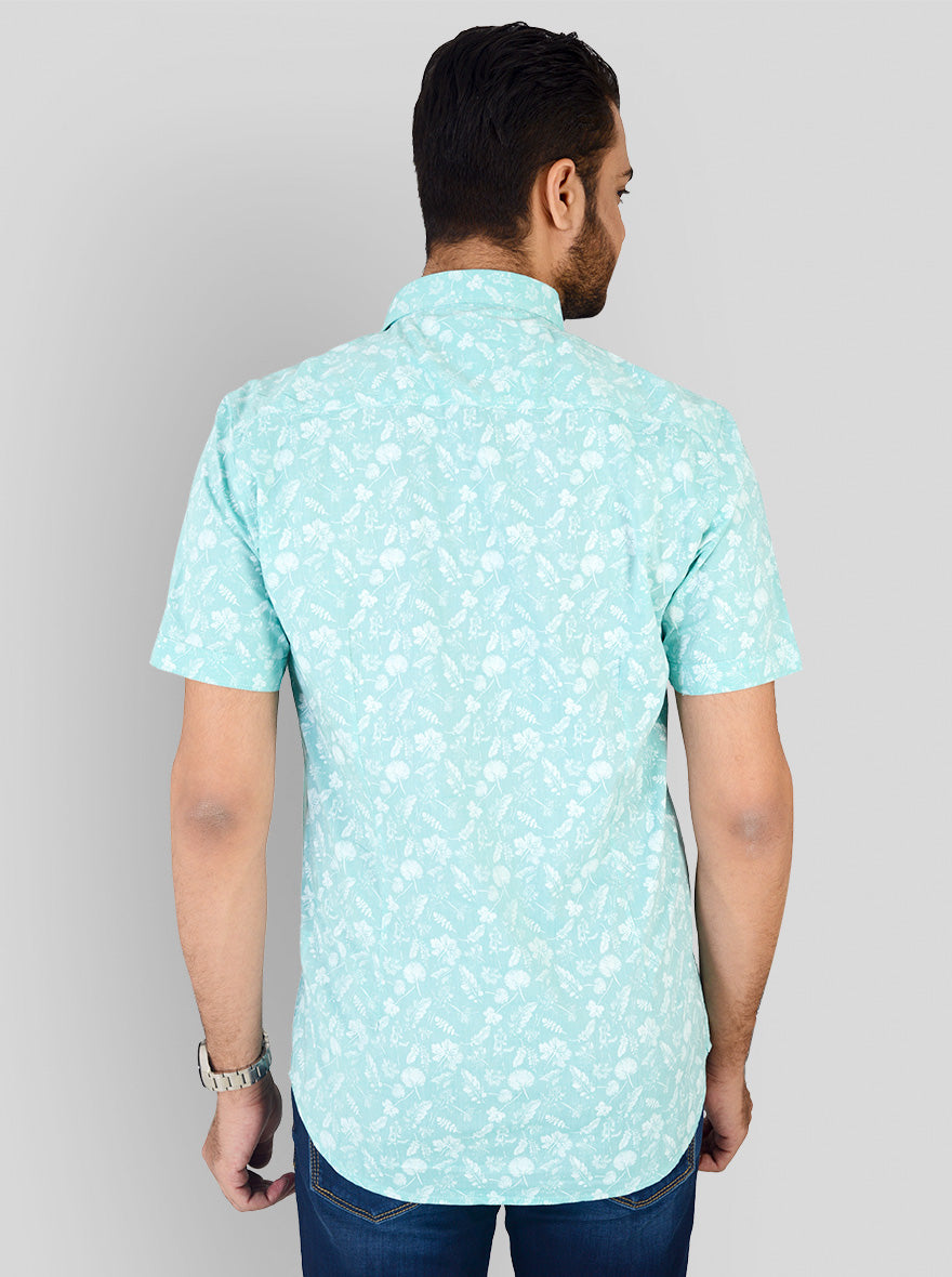 Water Green Printed Slim Fit Casual Shirt | JadeBlue