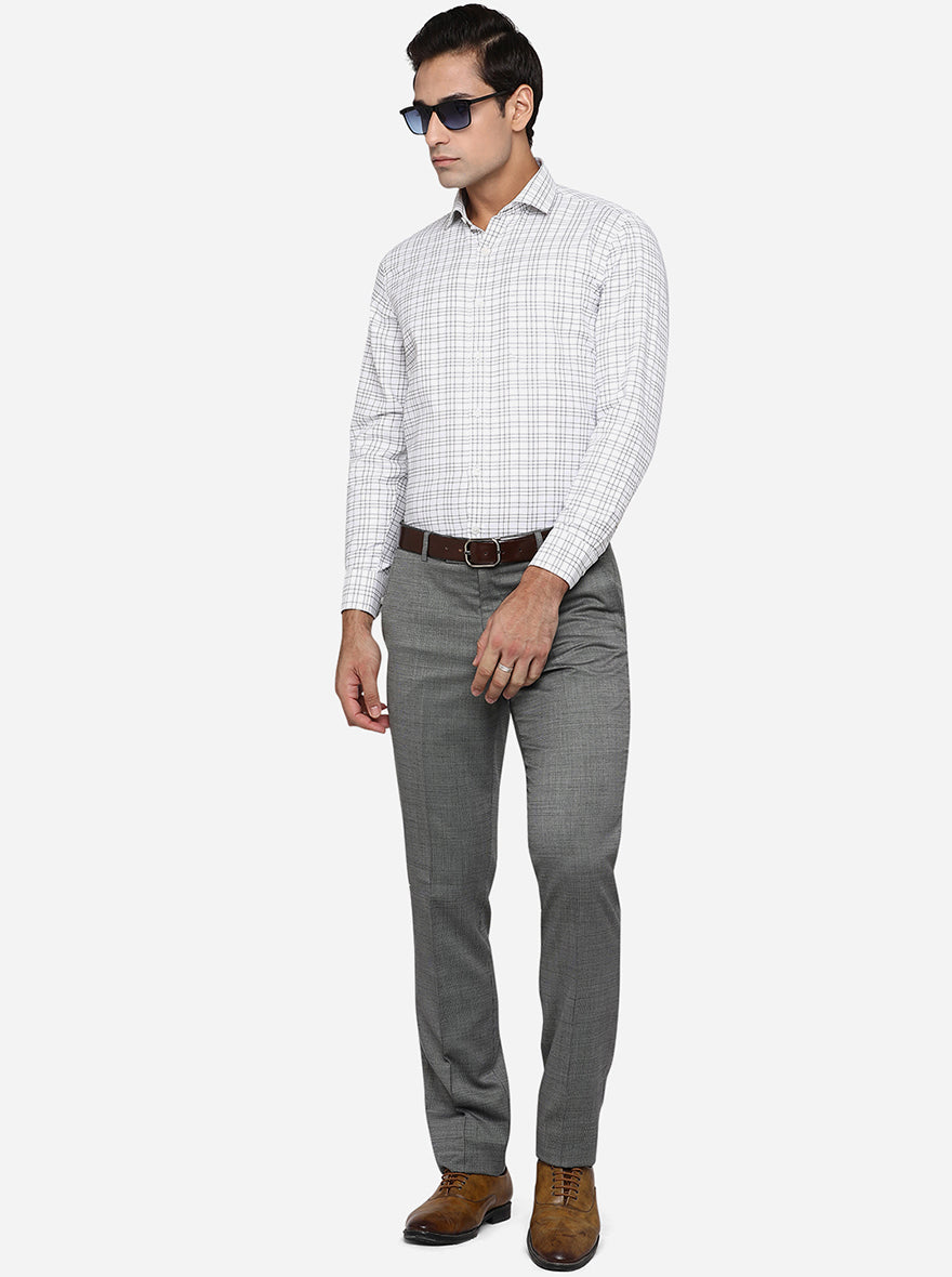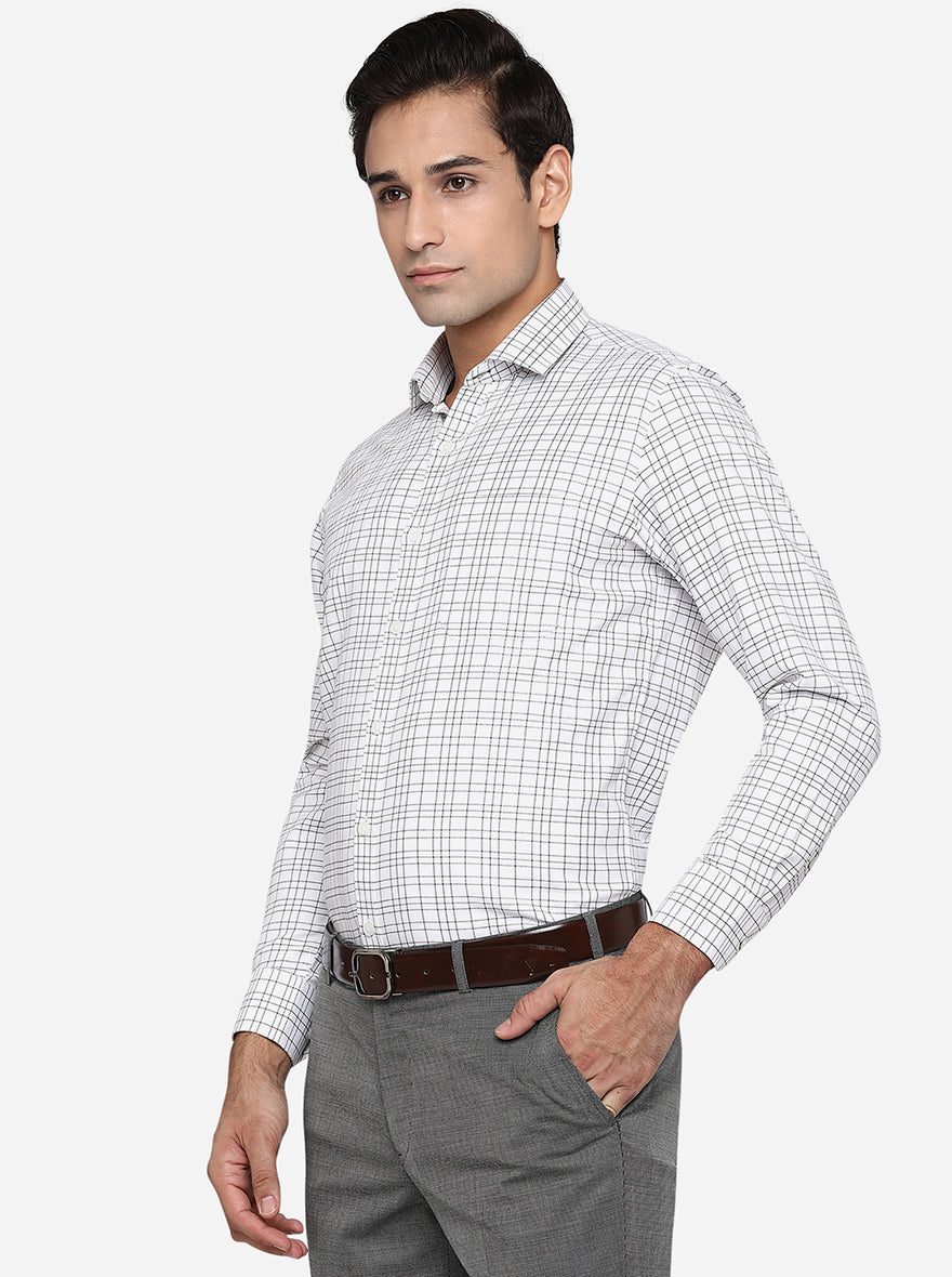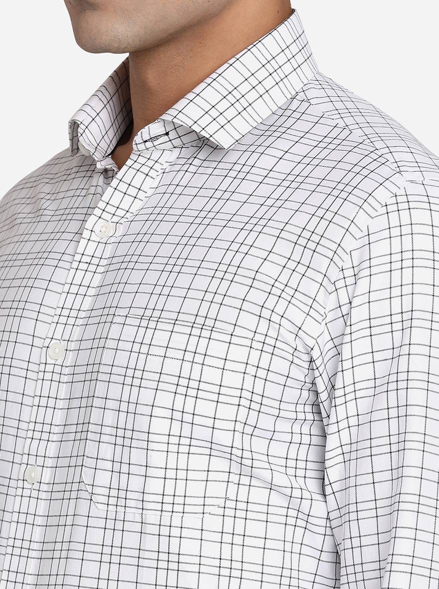 White & Black Checked Slim Fit Formal Shirt | Greenfibre