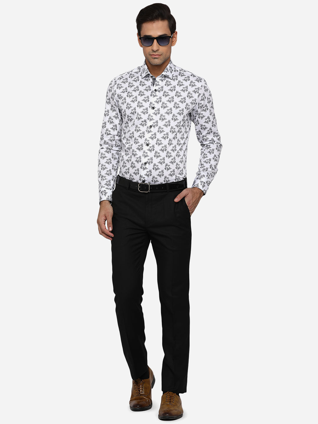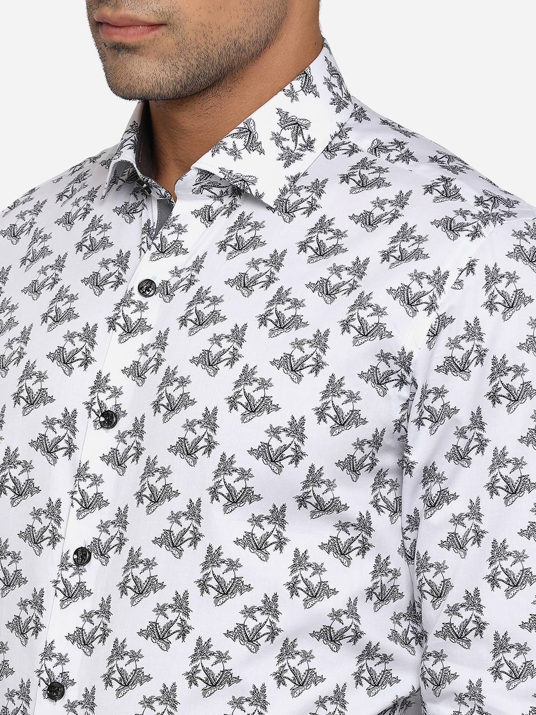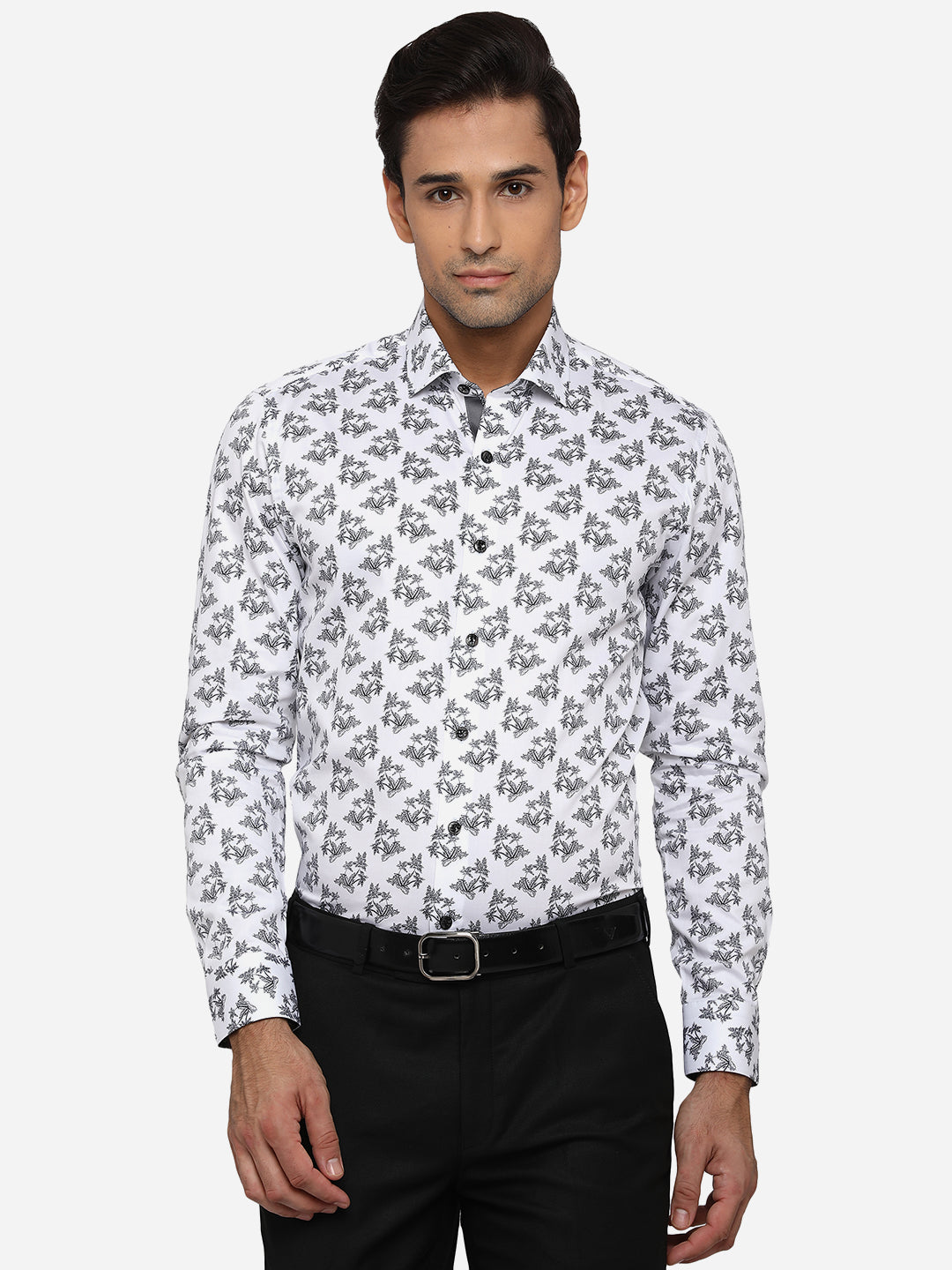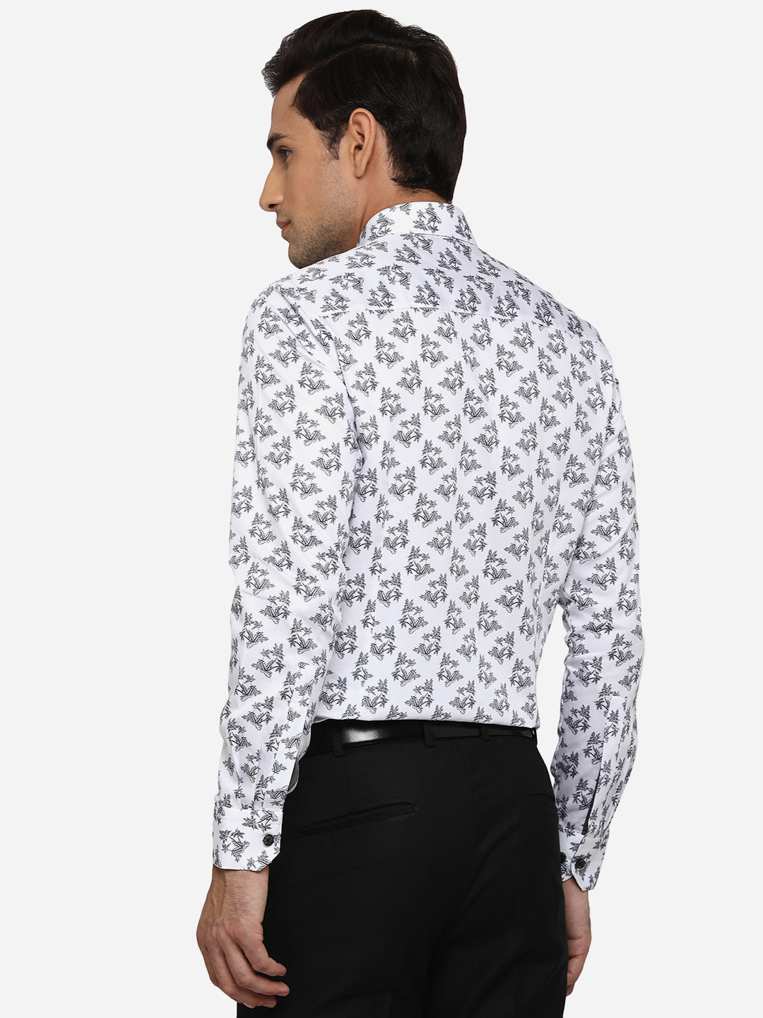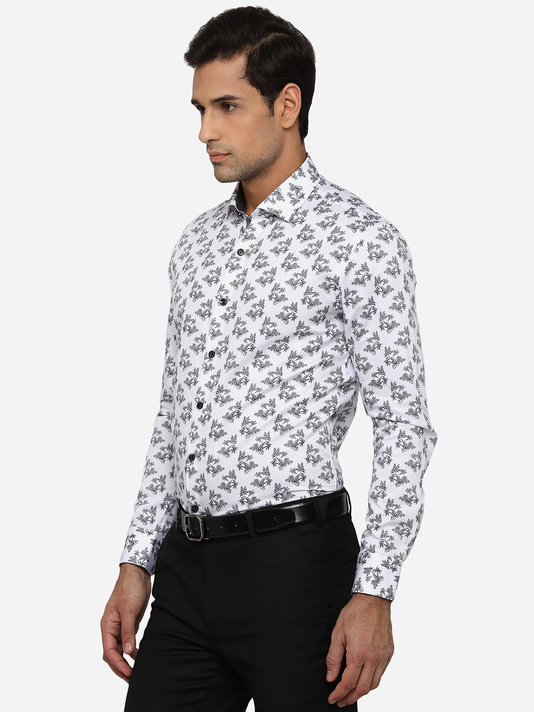 White & Black Printed Slim Fit Party Wear Shirt | JB Studio