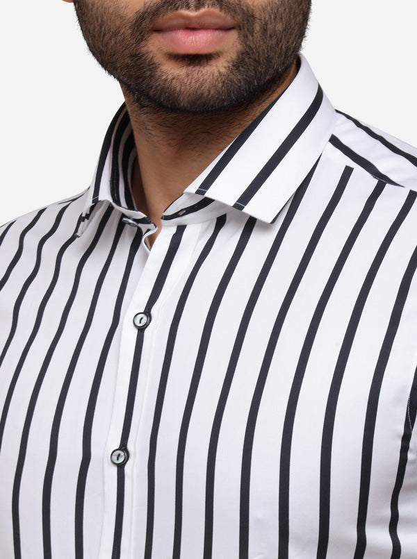 White & Black Striped Slim Fit Party Wear Shirt | Wyre