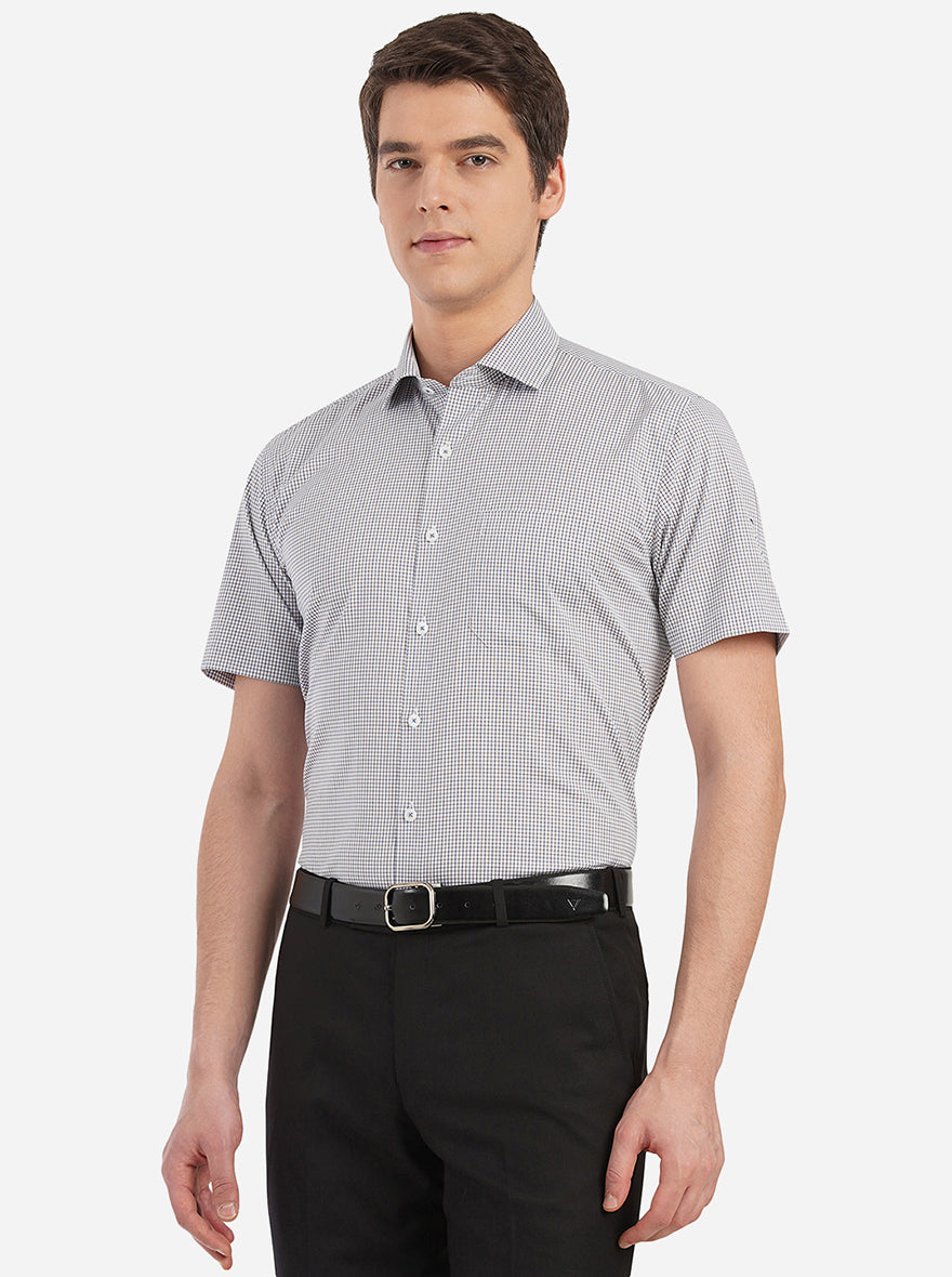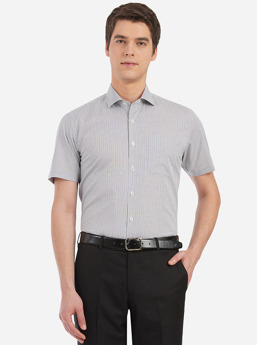 Details: Attend any formal occasion or event in style by donning this checks white, blue and brown formal shirt by JadeBlue. This regular fit shirt is tailored from good quality of breathable cotton fabric, which gives great flexibility and wearing comfort to you from morning till night. This enticing shirt features shirt collar, half sleeves, front buttons fastening and chest pocket. It will look great when you team this formal wear shirt with contrast formal trousers, belt, lace-up shoes and watch. Invest in this shirt now!