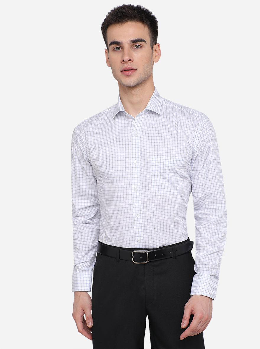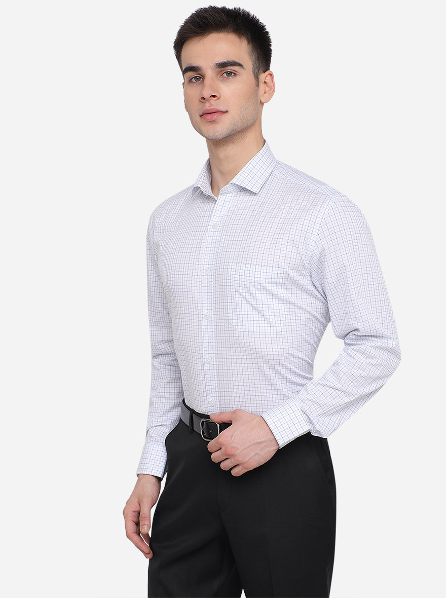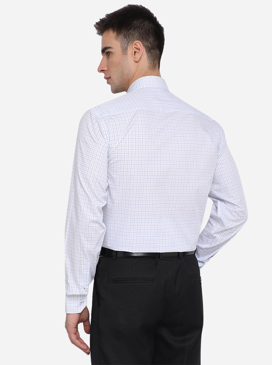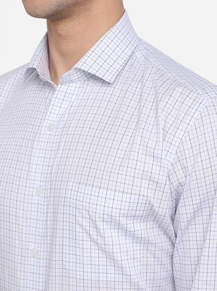 White & Blue Checked Regular Fit Formal Shirt | JadeBlue