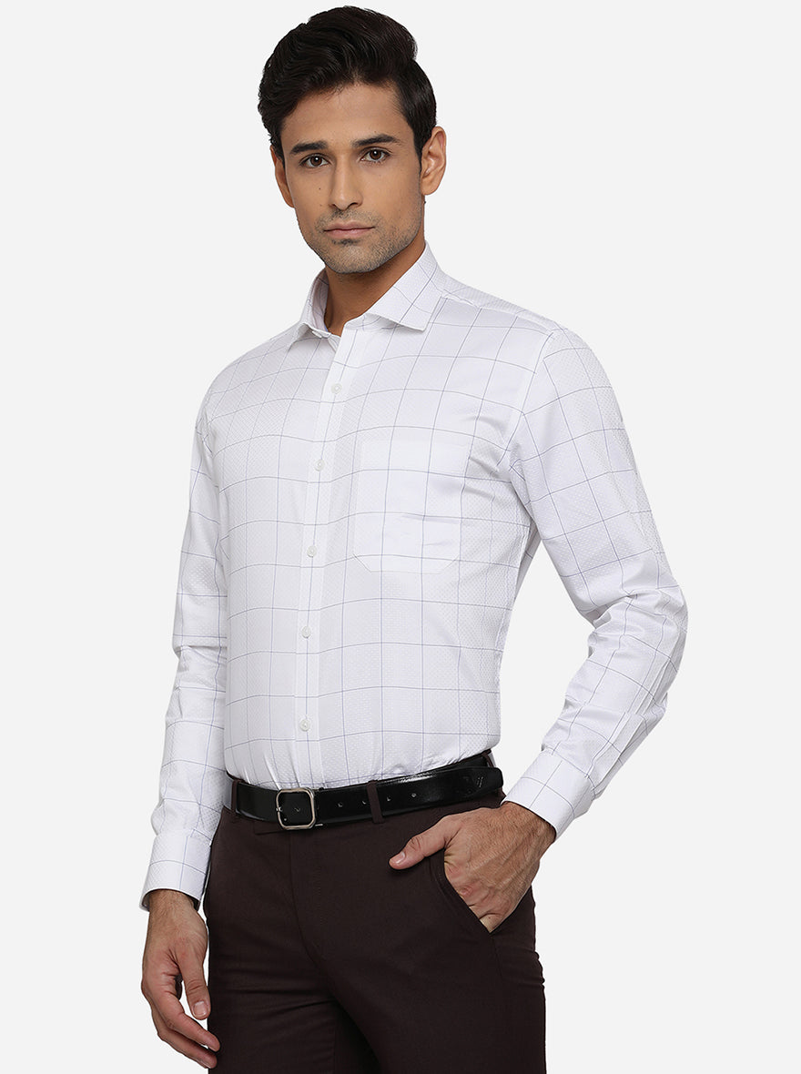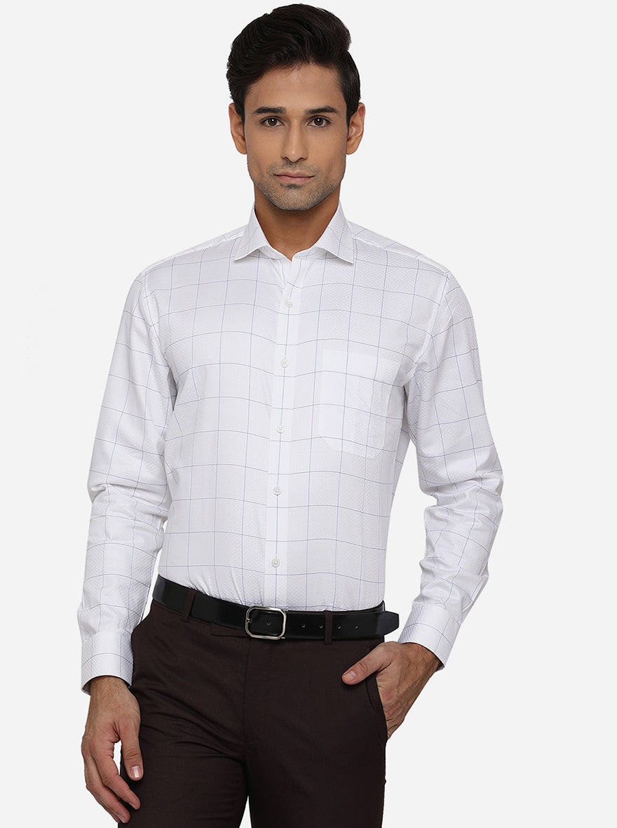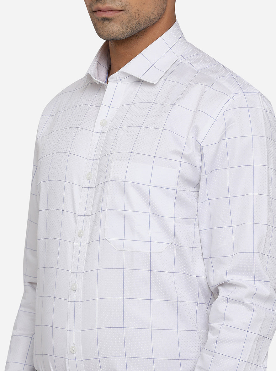 White & Blue Checked Regular Fit Formal Shirt | JadeBlue