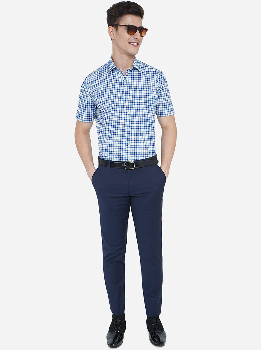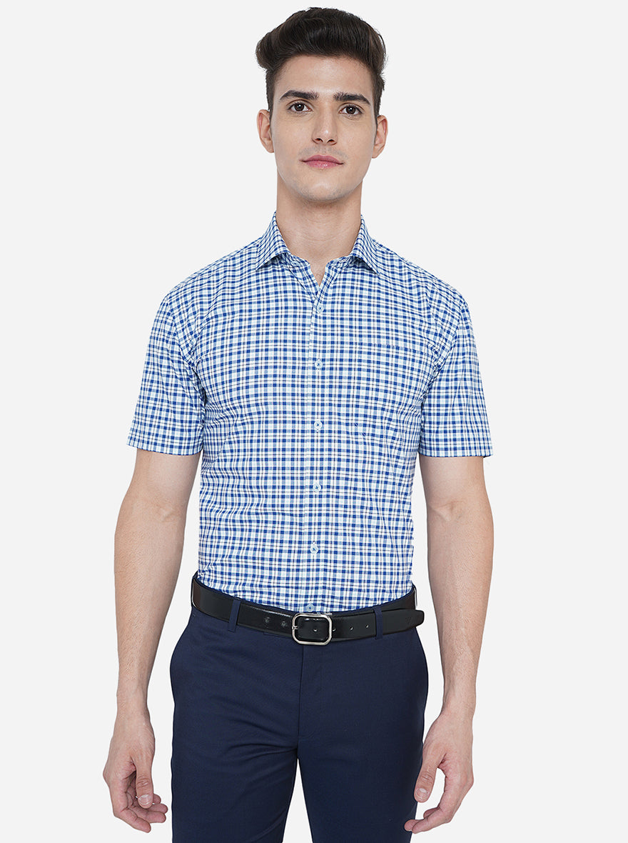 Details: Get the nostalgia vibe with this White & Blue 100% Cotton Formal Shirt from JadeBlue. Built with 100% Cotton promises a comfortable and breathable wearing experience. Offers a Regular fit for a Formal look which has been elevated with a Checked pattern. Features with a chest pocket, Half sleeves, and a regular shirt collar. Match it with the well-fitted trousers of your choice and a pair of oxford shoes and you are ready to go.