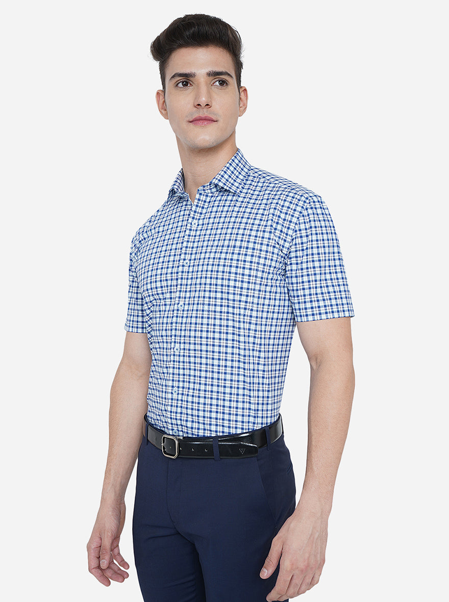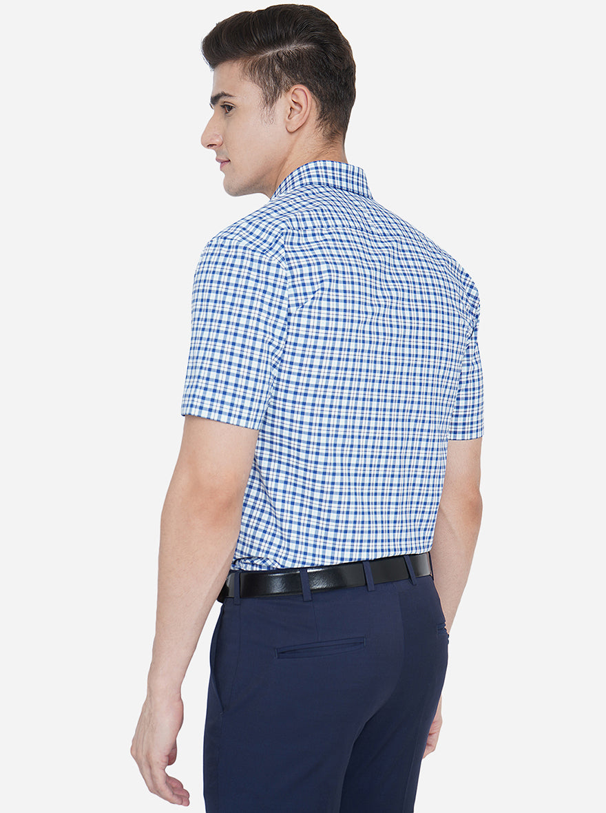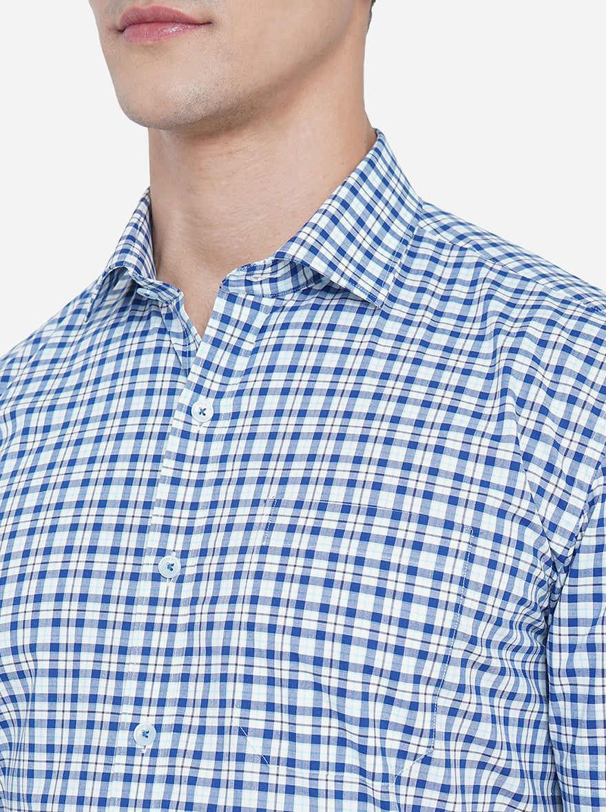 White & Blue Checked Regular Fit Formal Shirt | JadeBlue