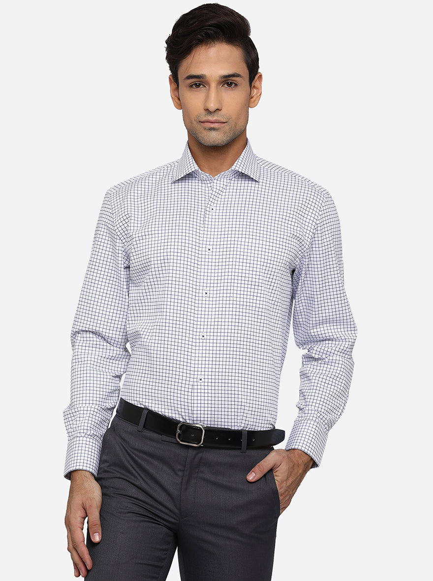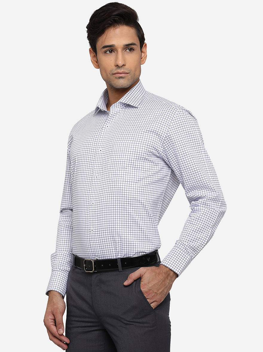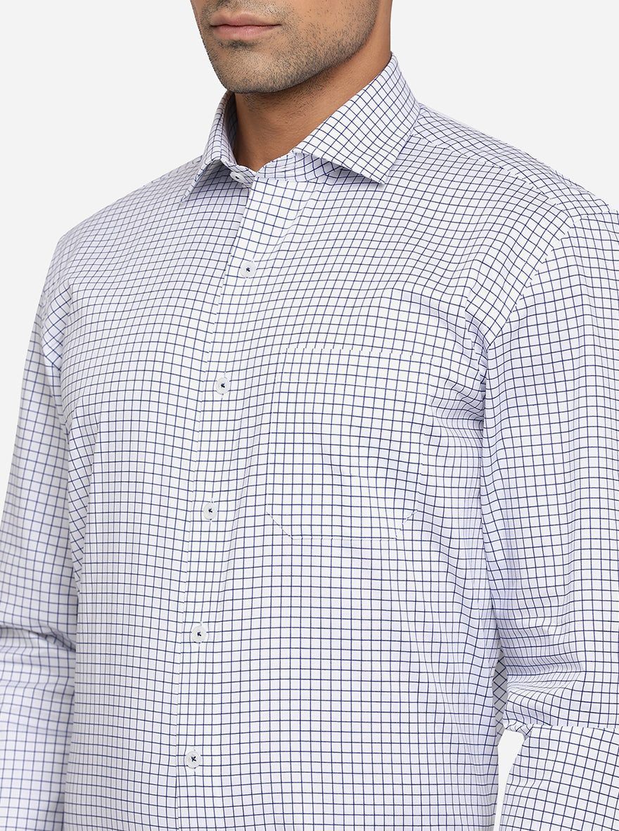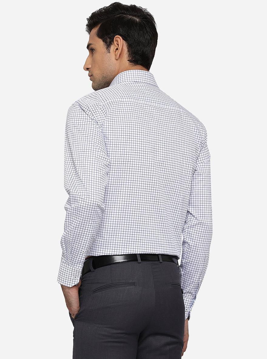 White & Blue Checked Regular Fit Formal Shirt | JadeBlue