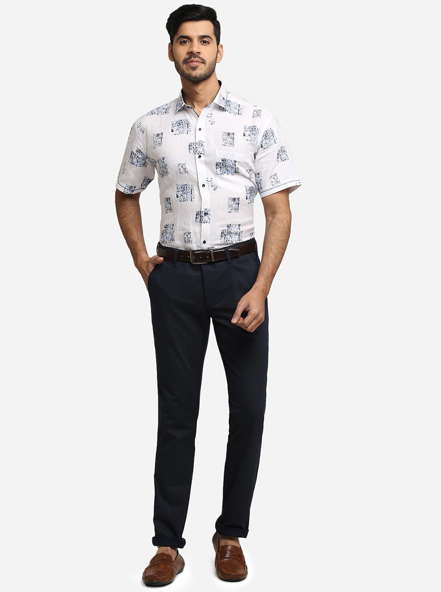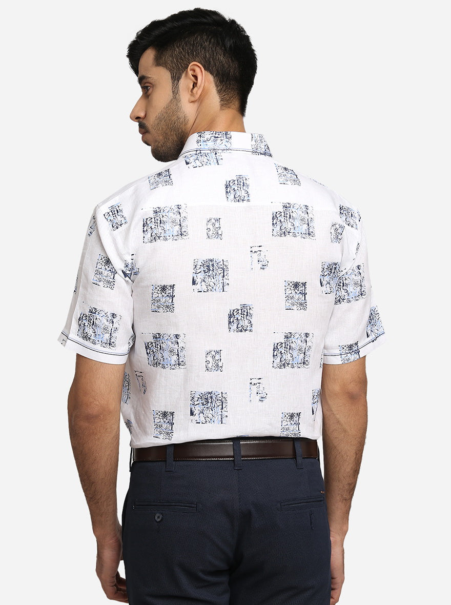 White & Blue Printed Slim Fit Party Wear Shirt | JB Studio