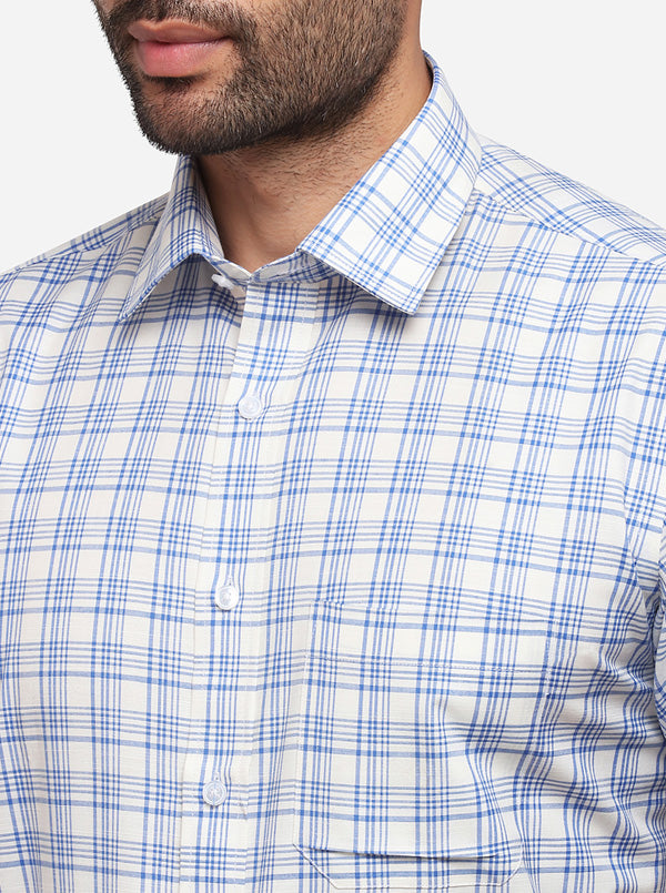 White & Blue Checked Regular Fit Formal Shirt | Greenfibre