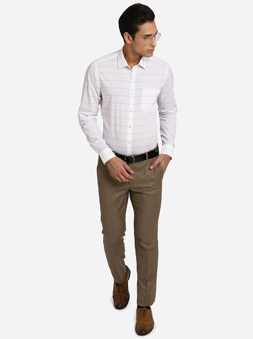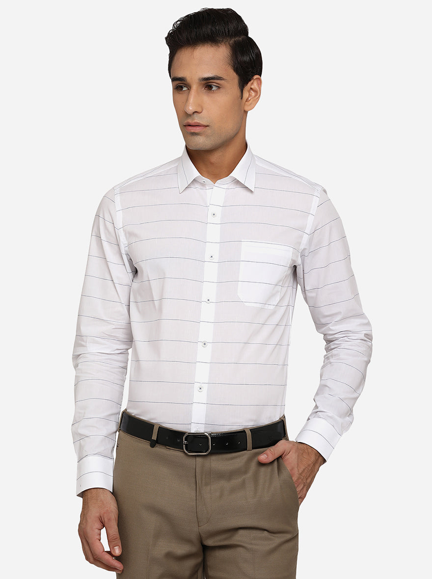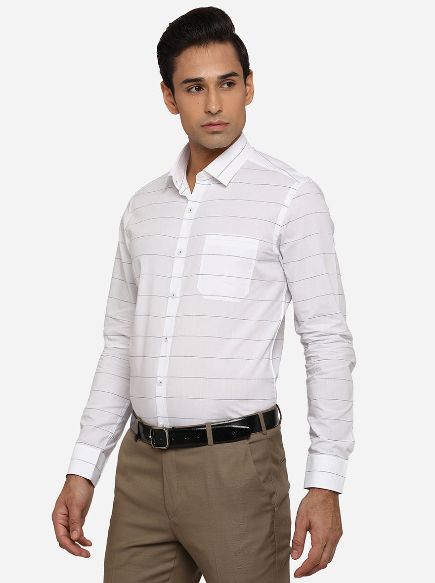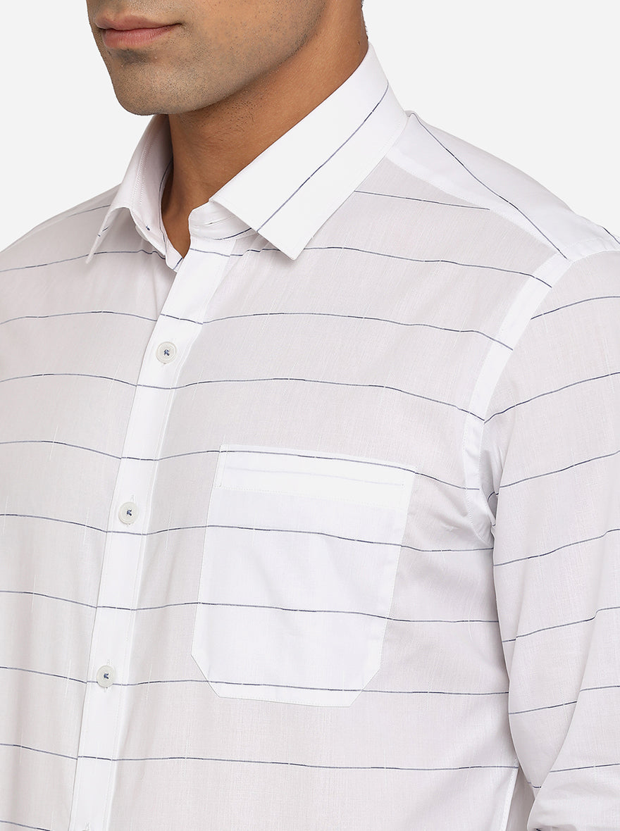 White & Blue Striped Slim Fit Formal Shirt | JadeBlue Youth