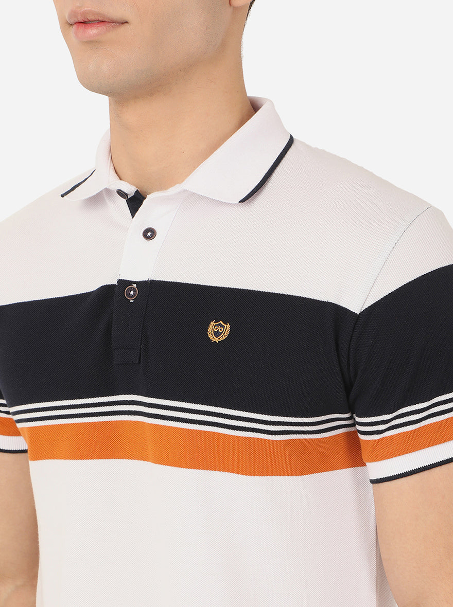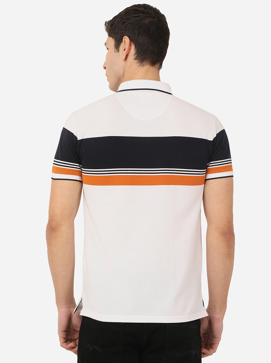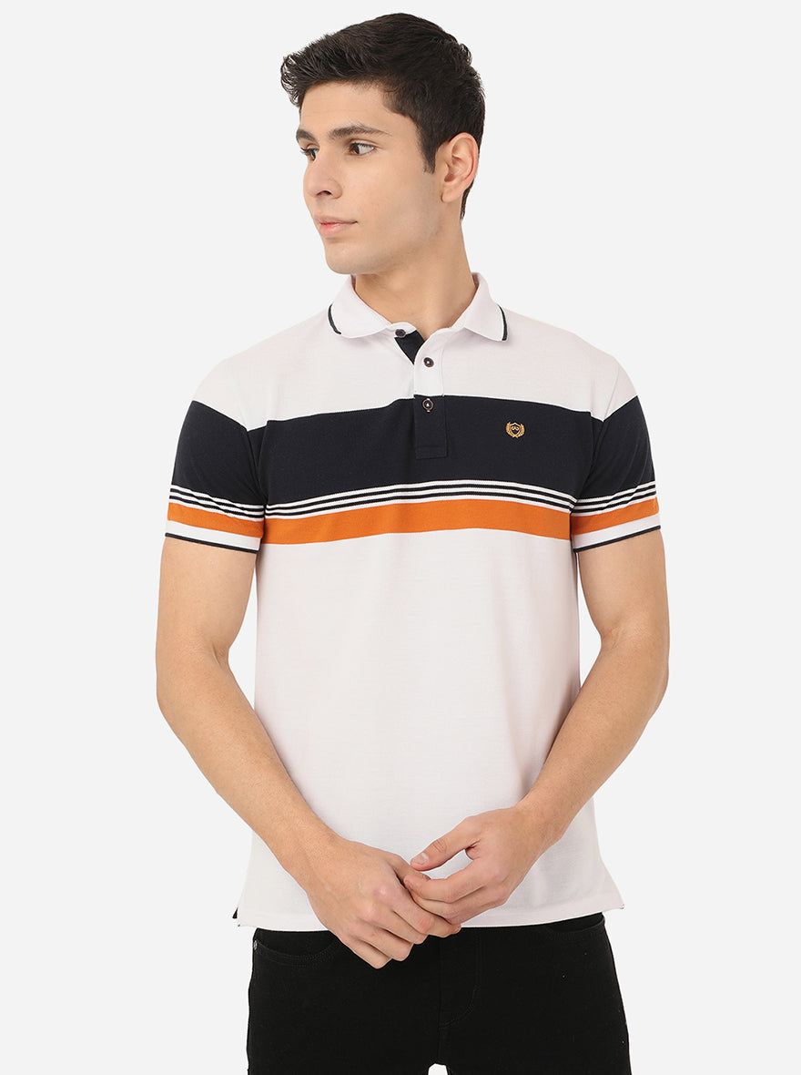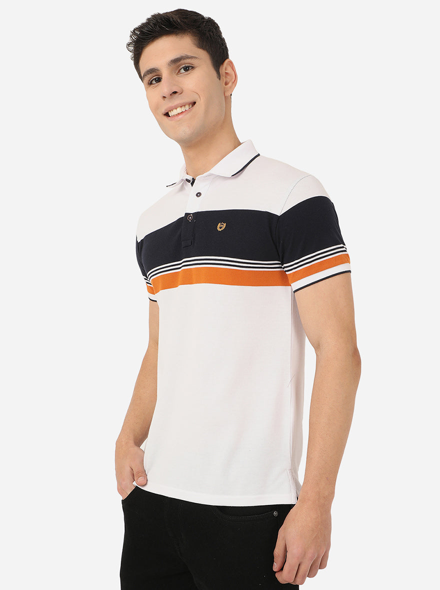 White & Blue Striped Slim Fit Polo T-Shirt | JadeBlue