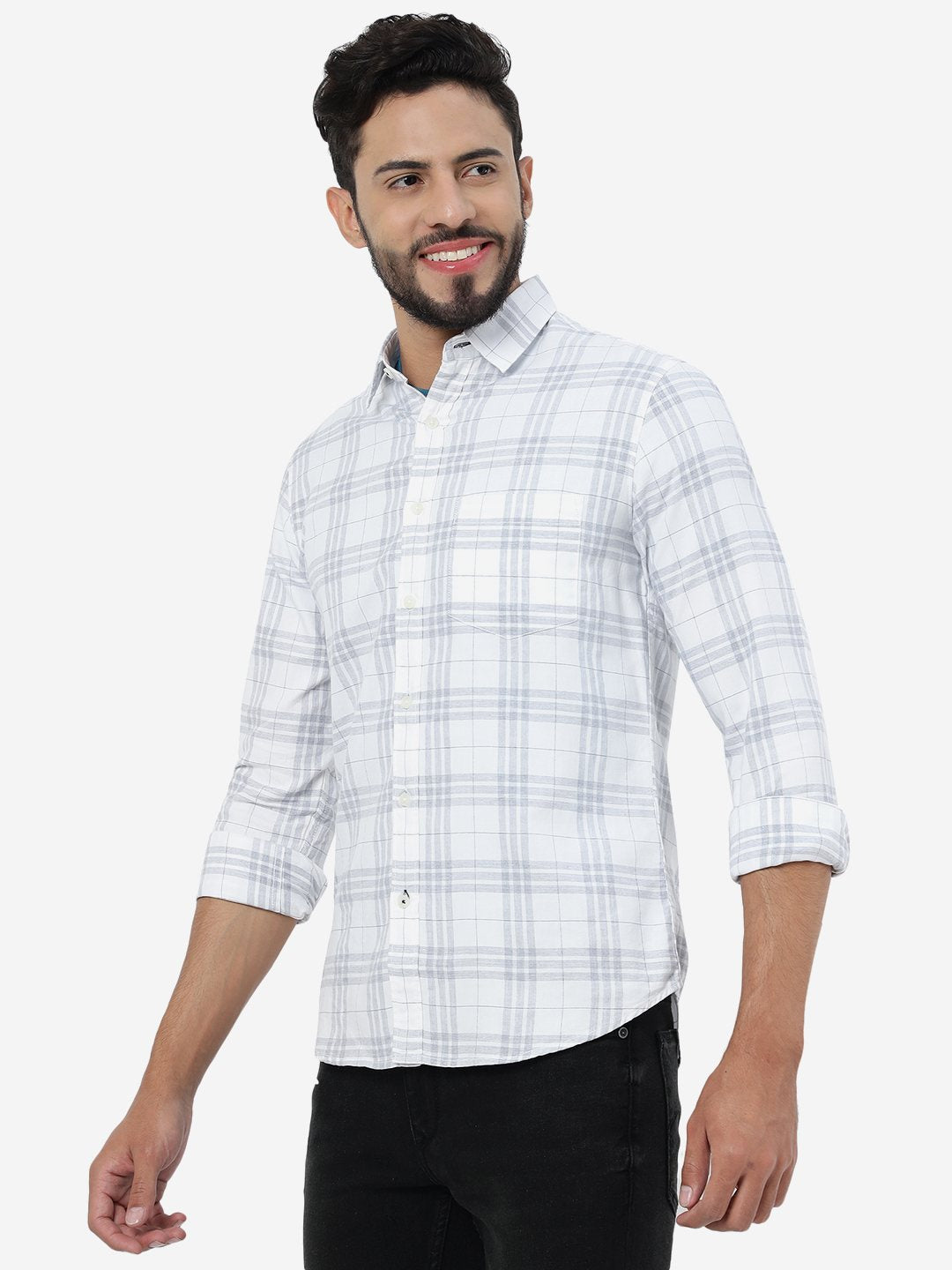 White Checked Slim Fit Casual Shirt | Greenfibre