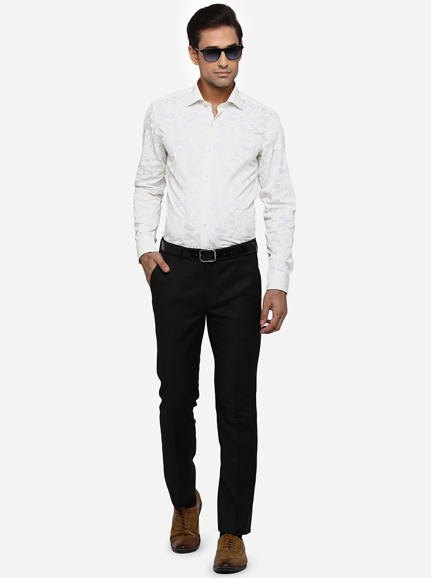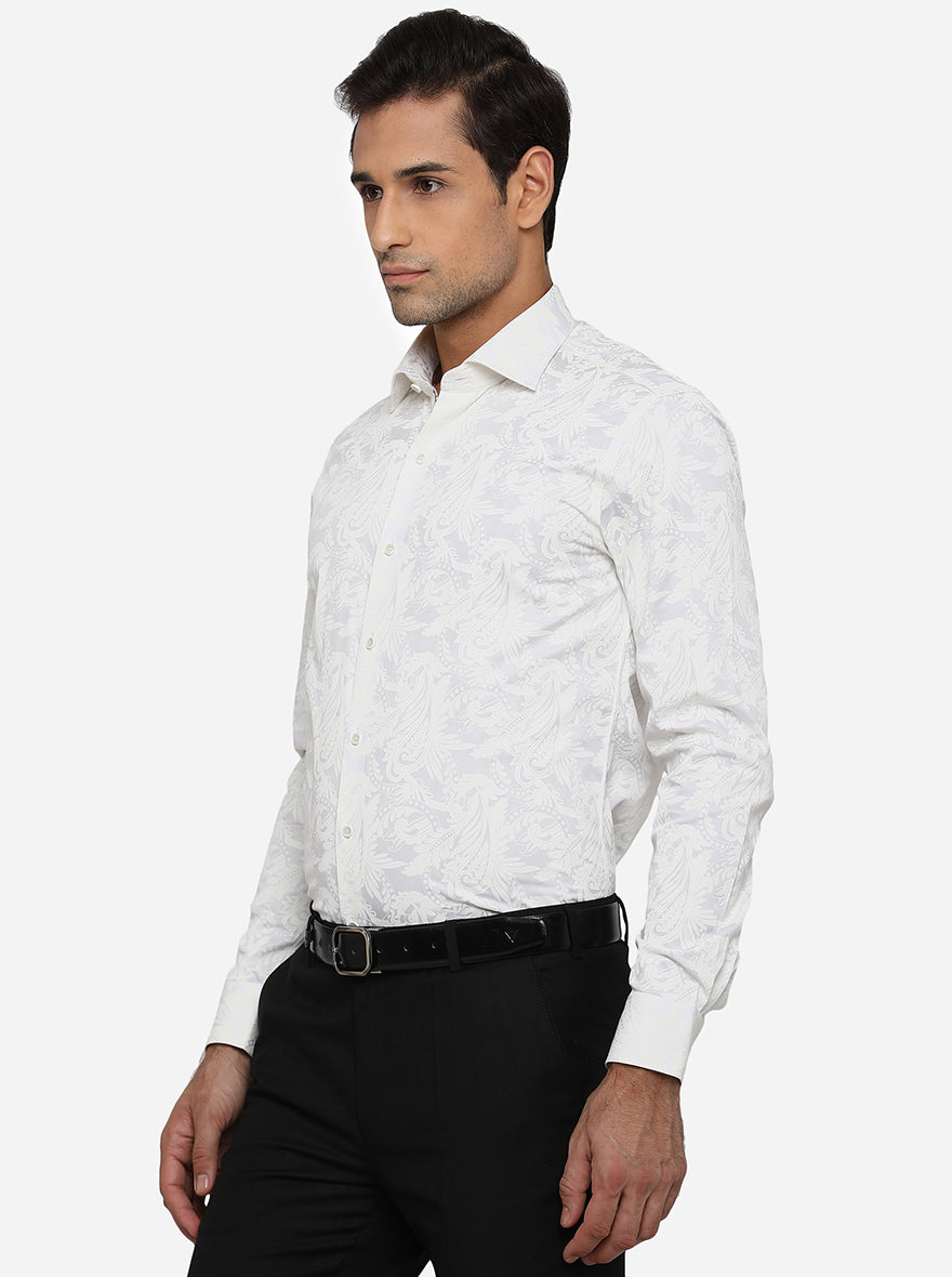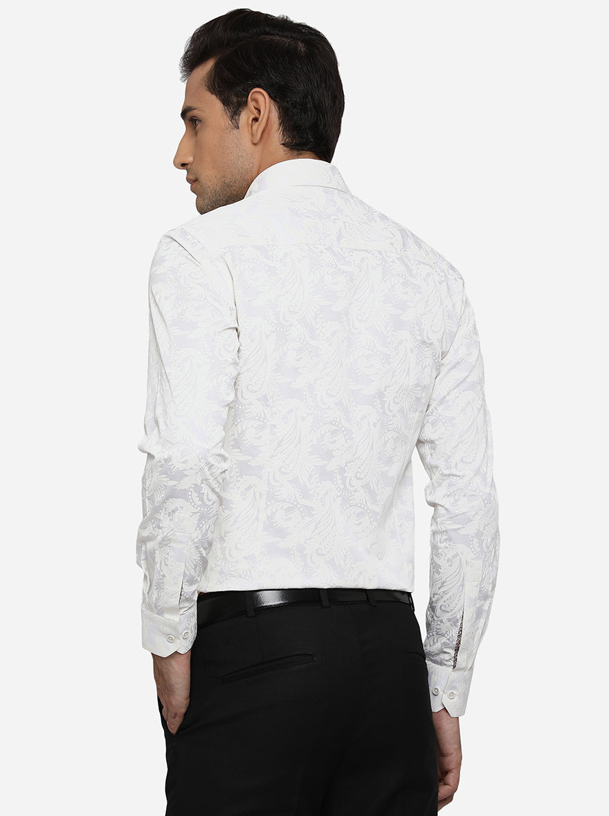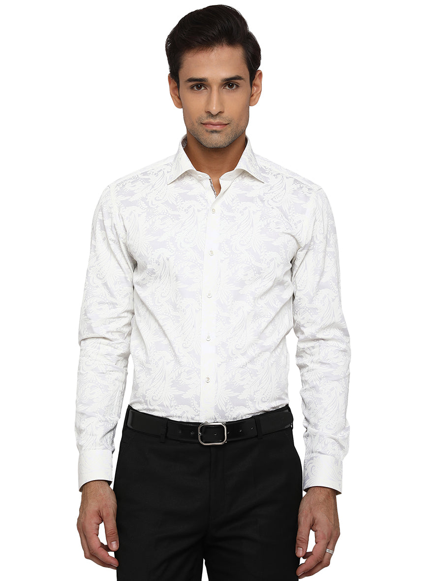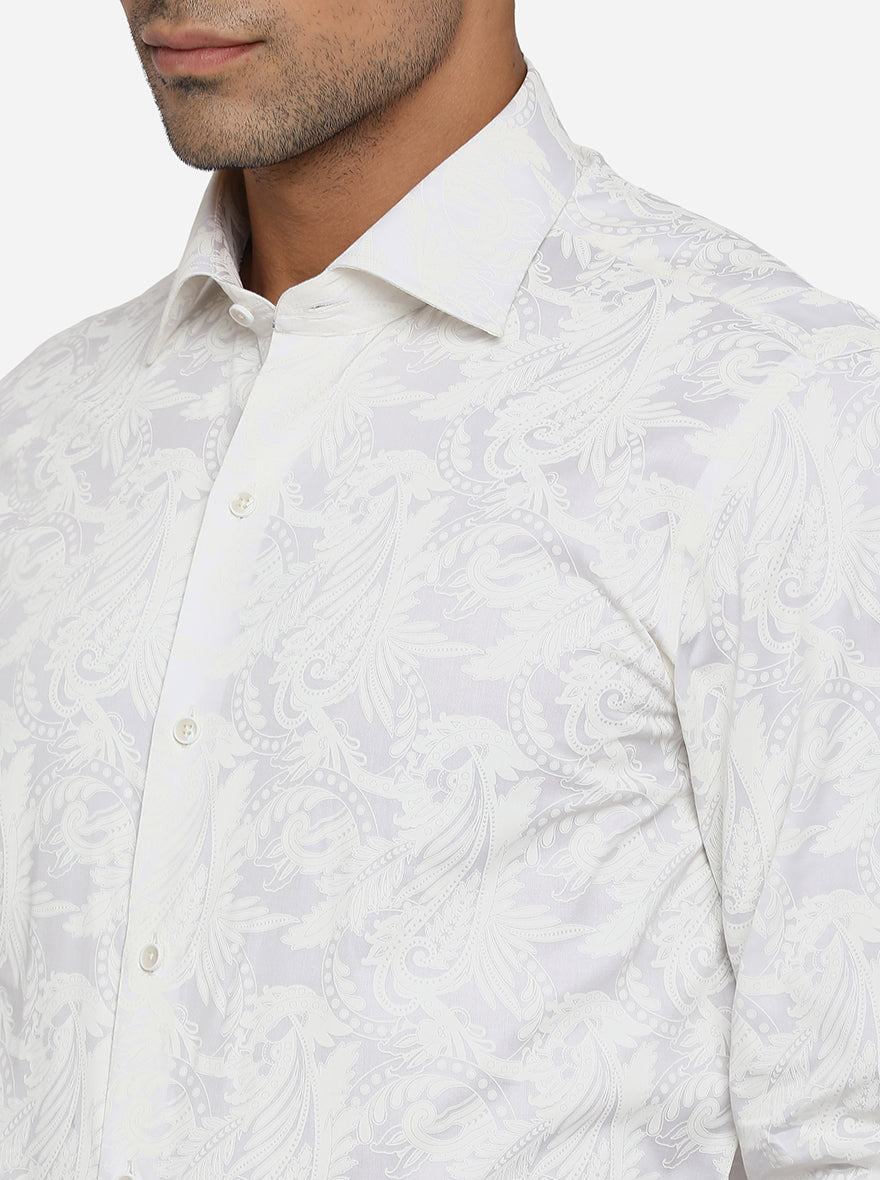 White & Cream Printed Slim Fit Party Wear Shirt | JB Studio