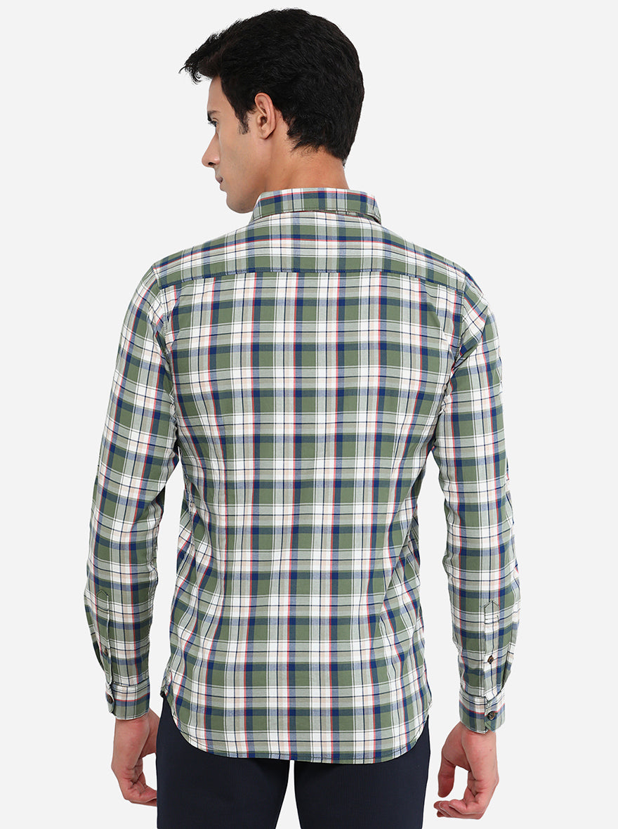 White & Green Checked Slim Fit Semi Casual Shirt | JadeBlue