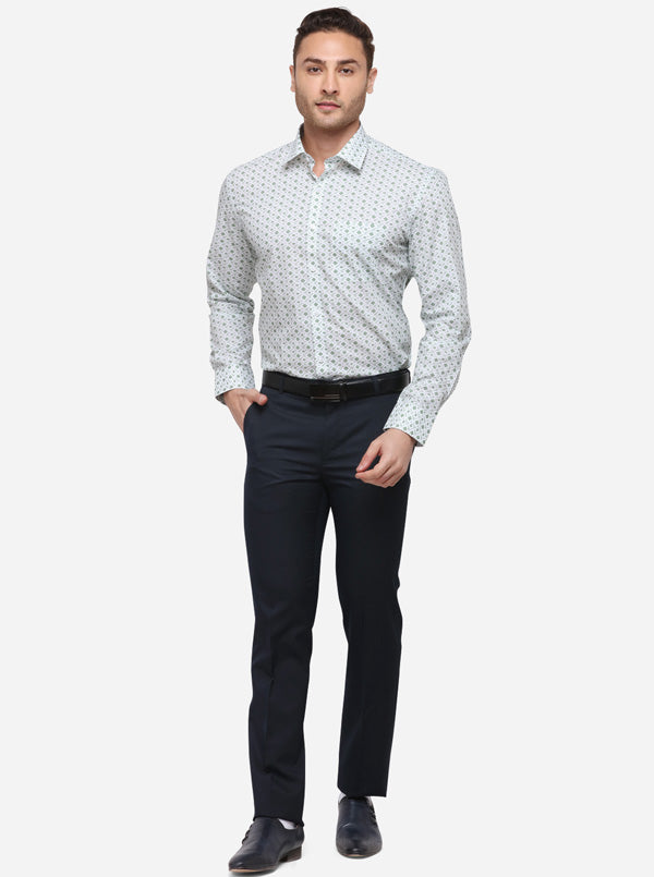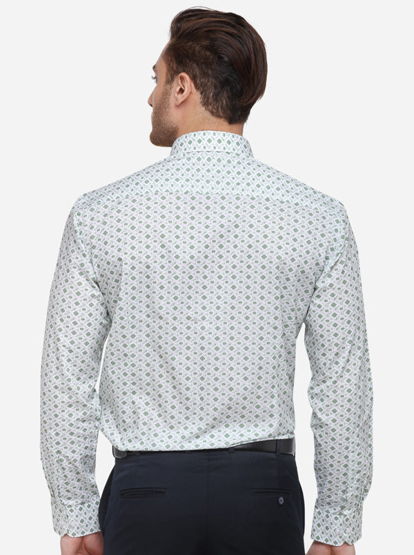 White & Green Printed Slim Fit Formal Shirt | Greenfibre