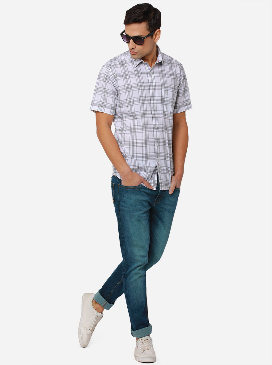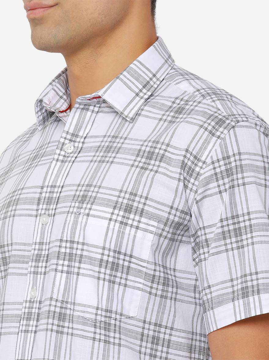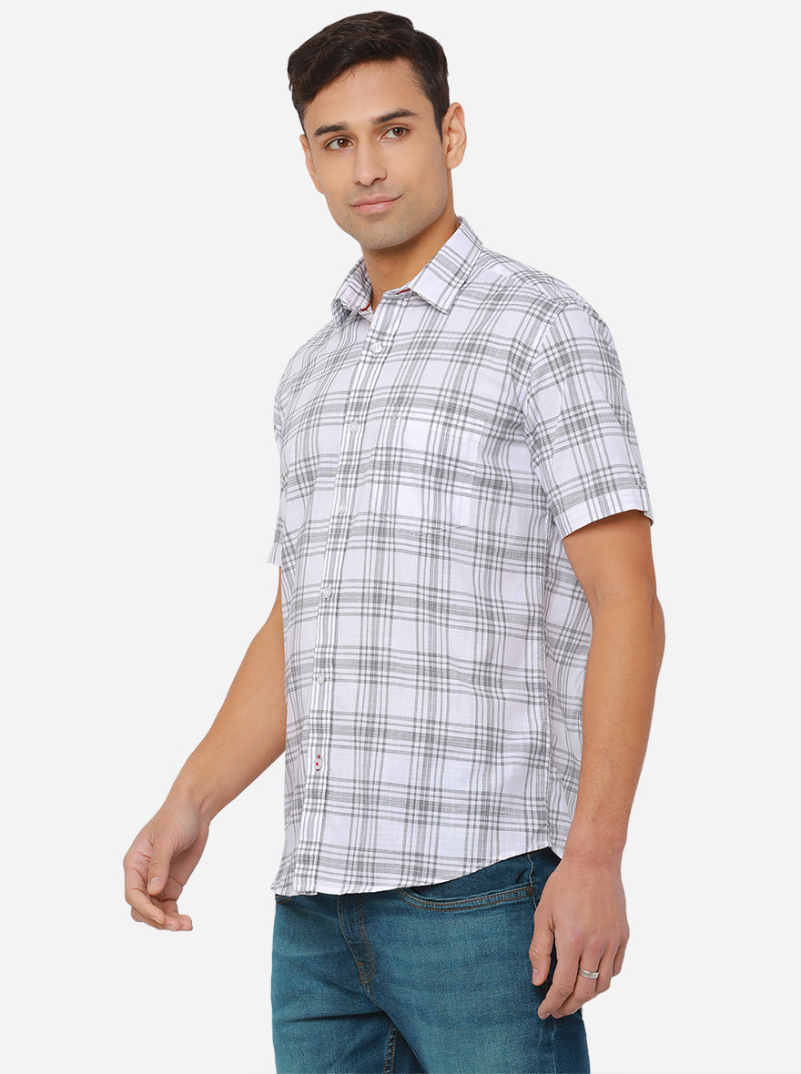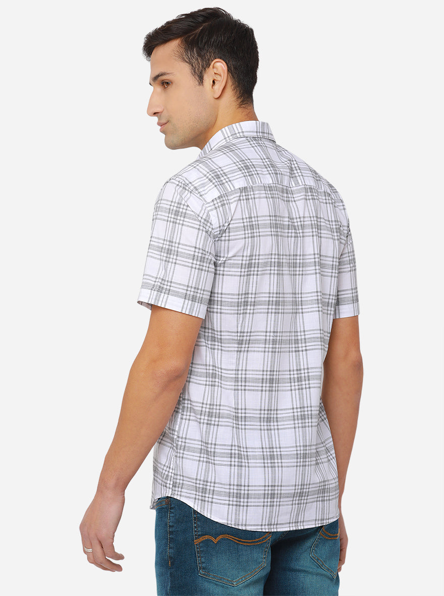 White & Grey Checked Slim Fit Casual Shirt | JadeBlue