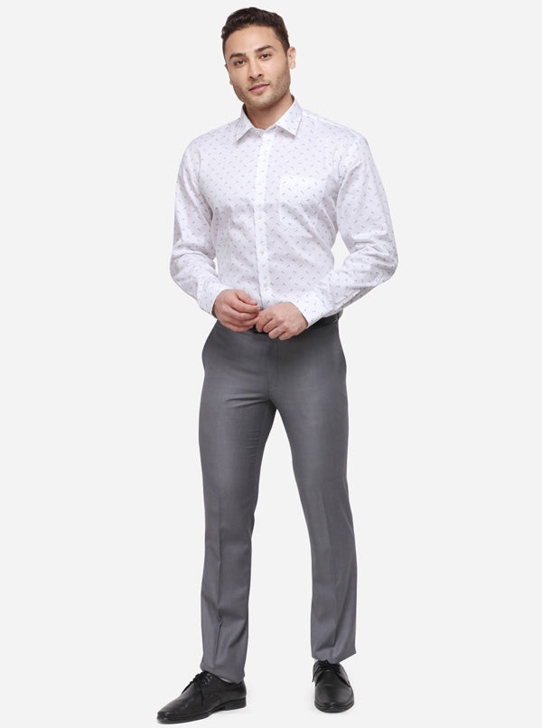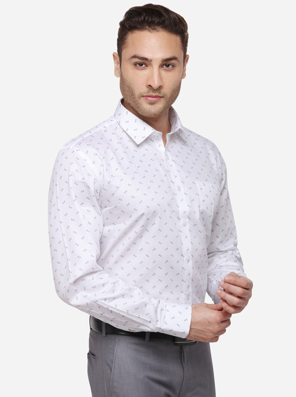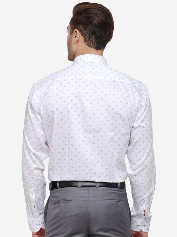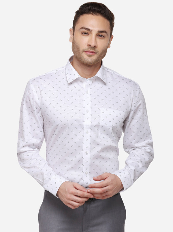 White & Grey Printed Regular Fit Formal Shirt | JadeBlue