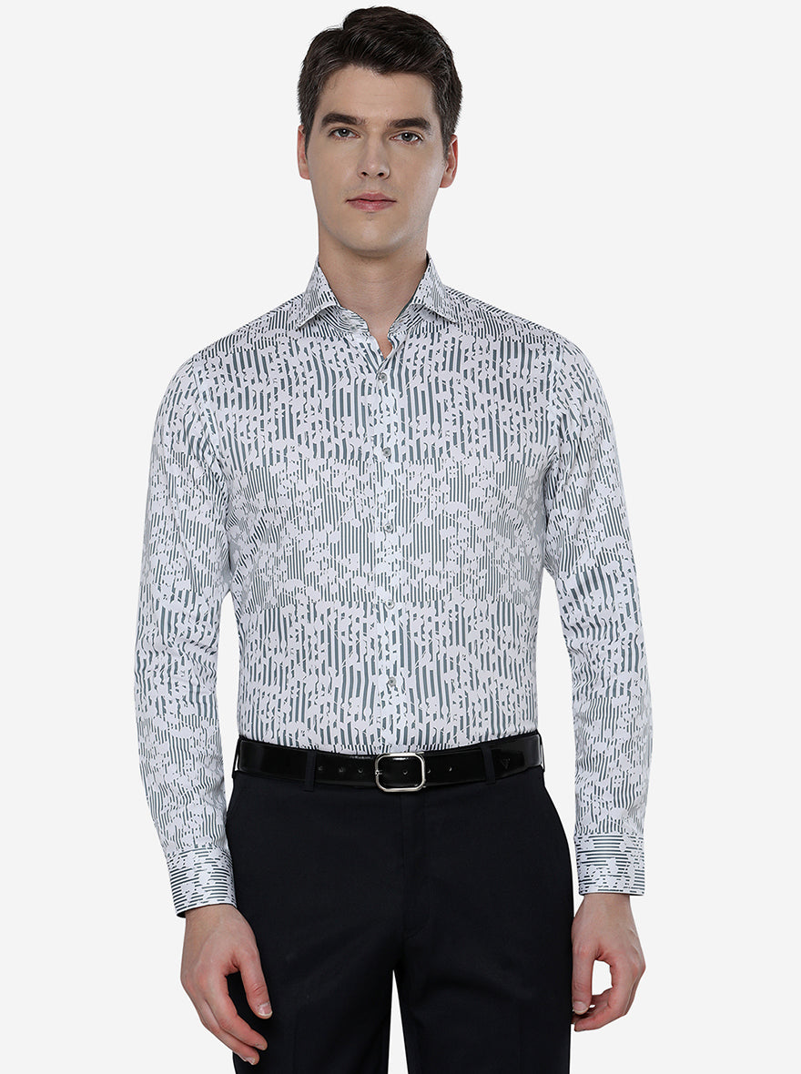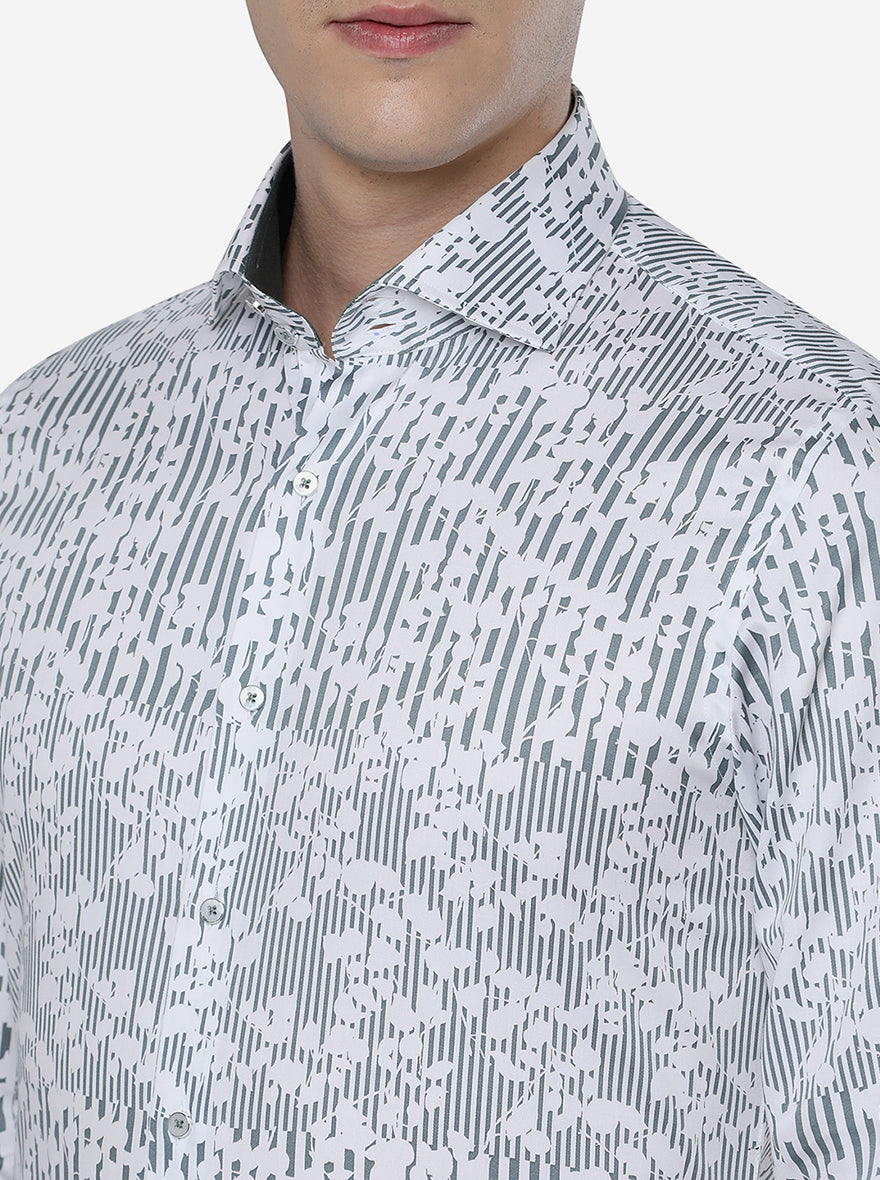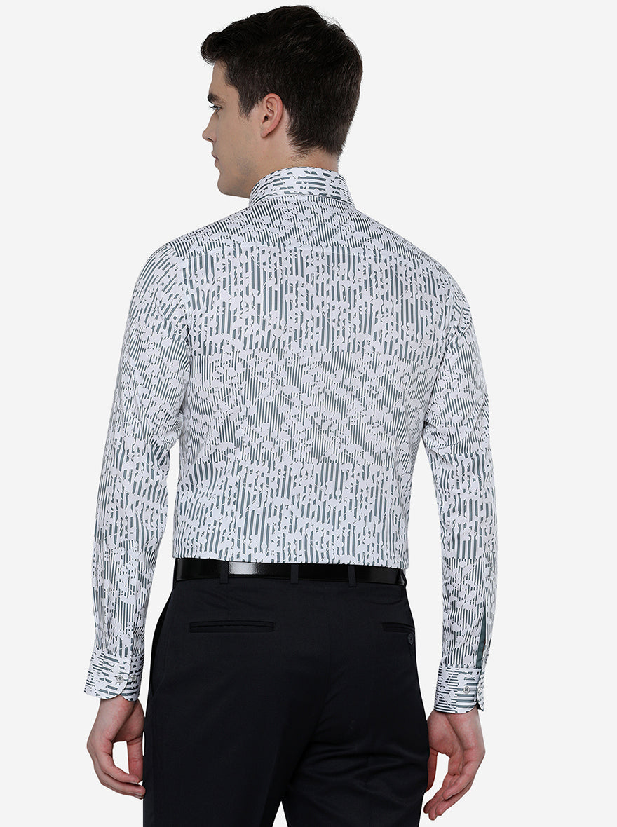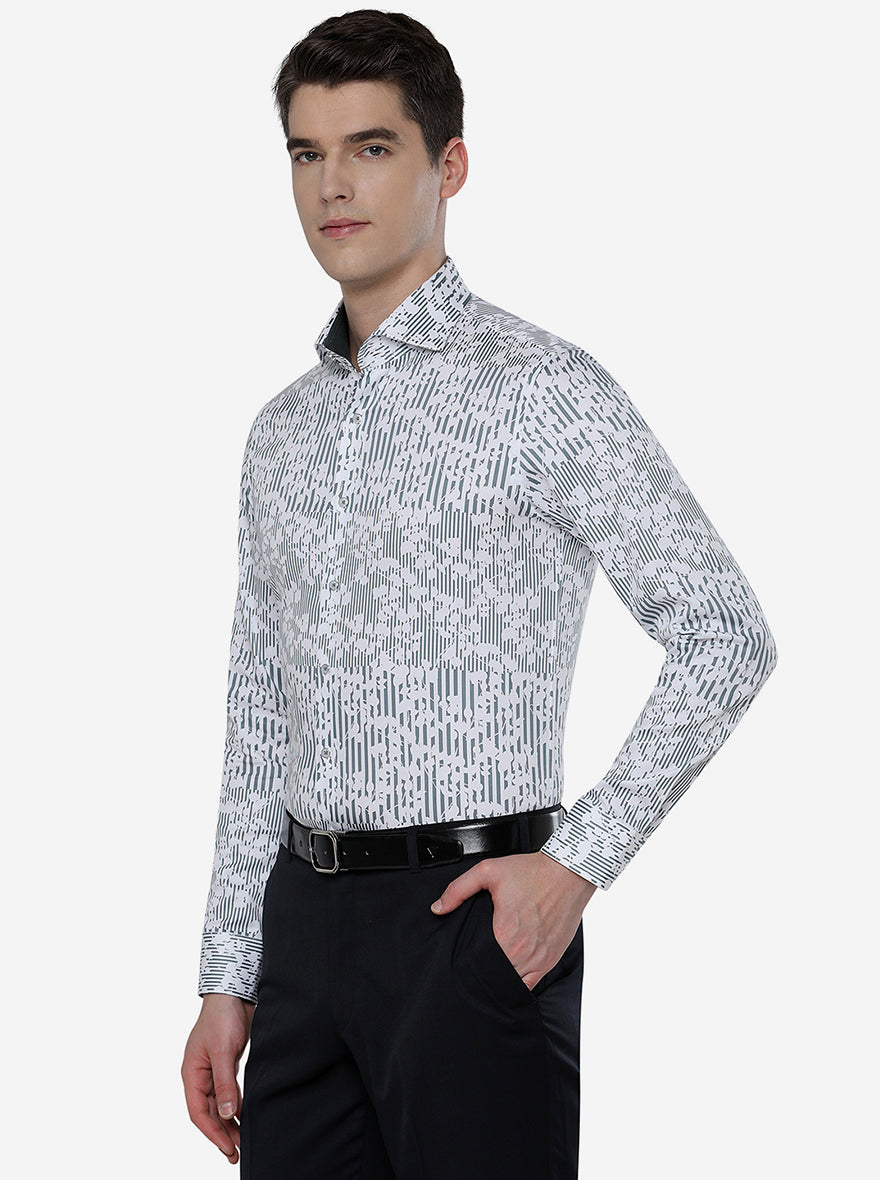 White & Grey Striped Slim Fit Party Wear Shirt | JB Studio