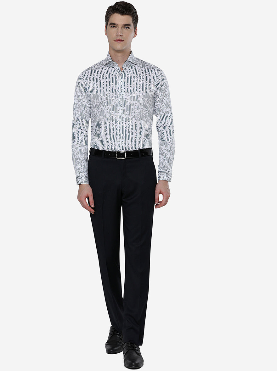 Details: Make a grand entry at any evening party or event in this striped white and grey party wear shirt. Designed by JB Studio, this slim fit shirt is made from cotton fabric, which wicks away moisture and keeps you comfortable all through the day. This appealing shirt is tailored with features like shirt collar, full sleeves, buttoned cuffs and front buttons placket, which lends it a meaningful yet functional touch. When styled with black trousers, belt and shoes, it will bestow you with a party perfect look instantly.