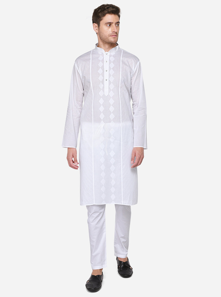 Dress up in this super classy Self Design White Kurta Set Add a stylish edge to your ethnic wear collection by opting for this Self Design White Kurta Set This piece is stitched with basic features and lets you stay fashionable and comfortable all day long. Made to perfection, this Kurta Set is styled with basic features and offers all-day comfort. Own it. JadeBlue launches super comfortable for men's bottom wear they come tag less for additional comfort. This regular Cotton is super comfortable. It is a great wear for an all-day outing. Stay comfy in our super soft Men's bottom wear.