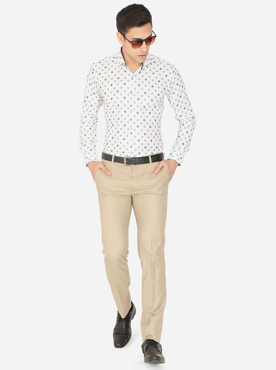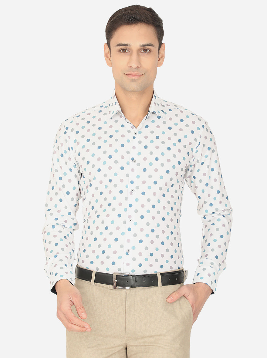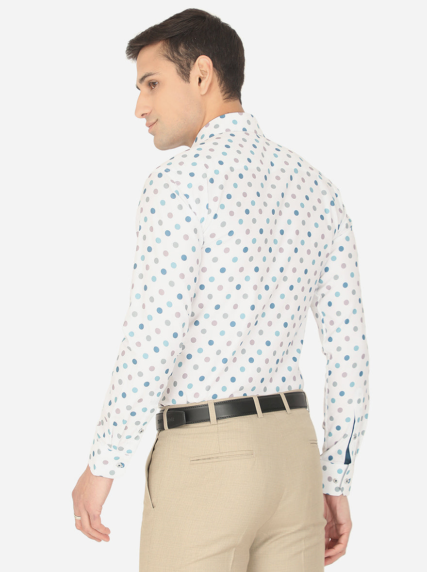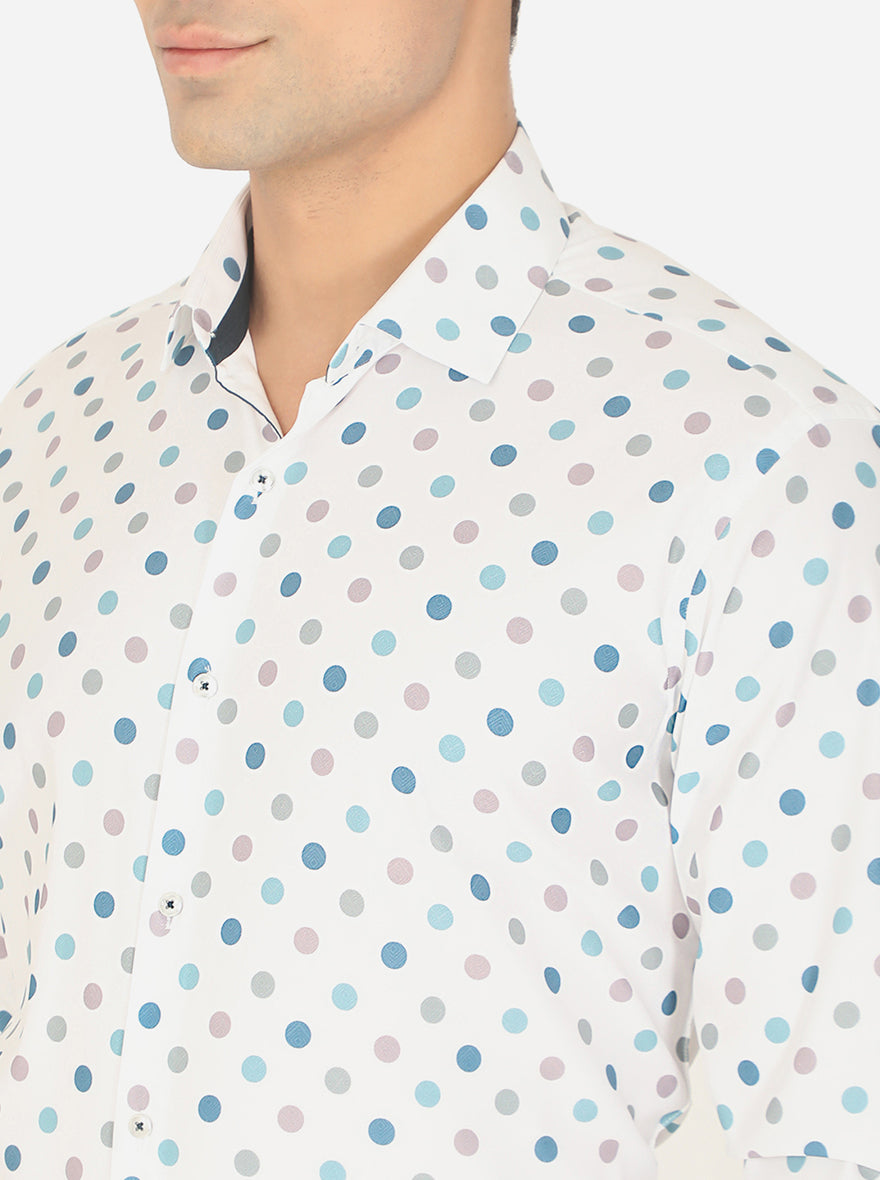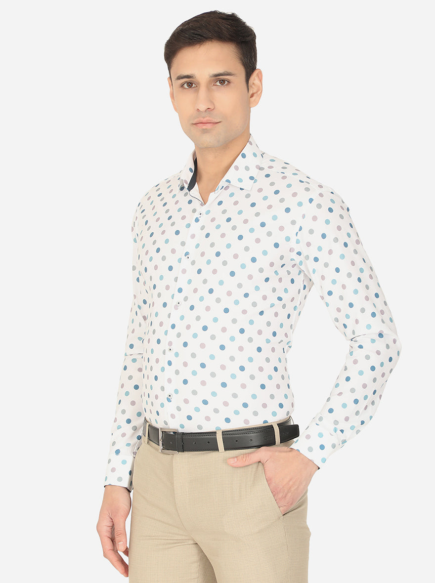 White & Multi Printed Slim Fit Party Wear Shirt | JB Studio