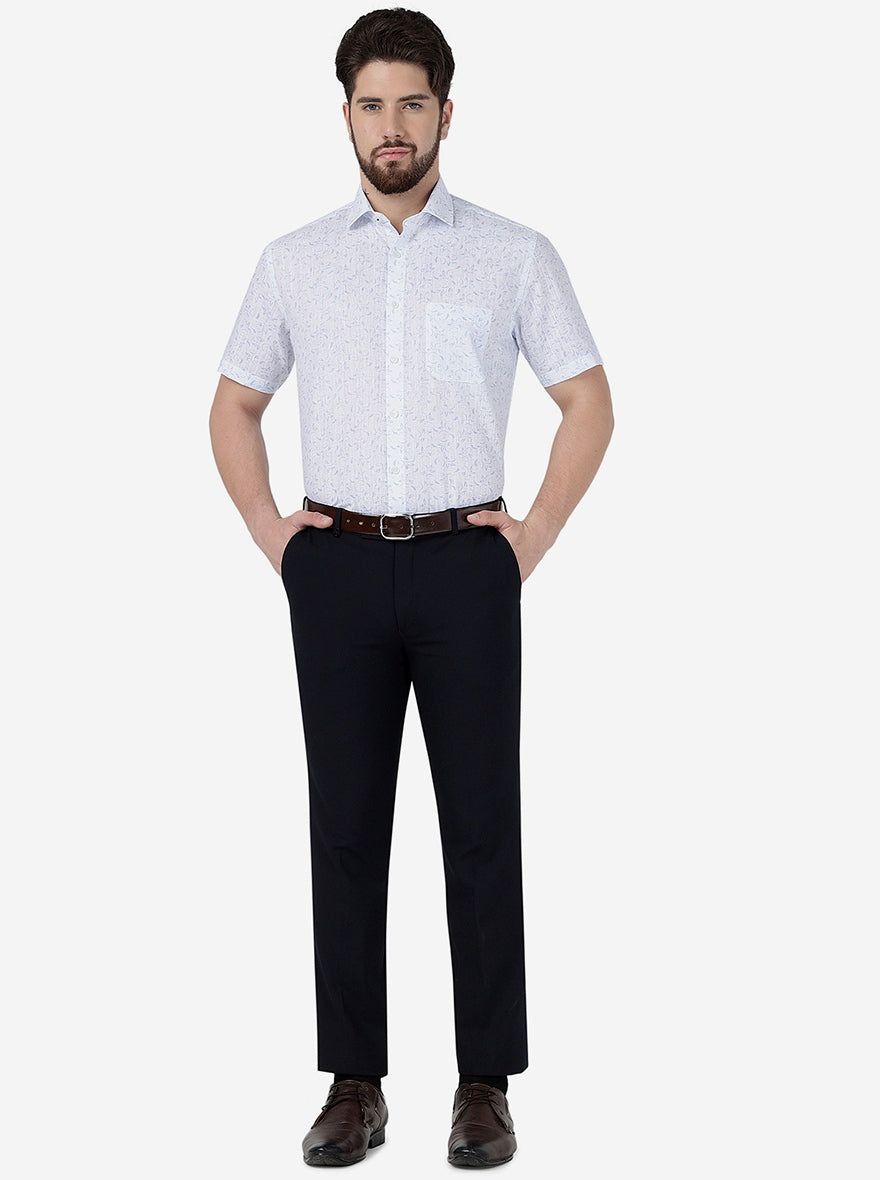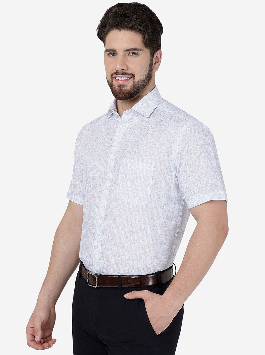 White Printed Regular Fit Formal Shirt | Greenfibre