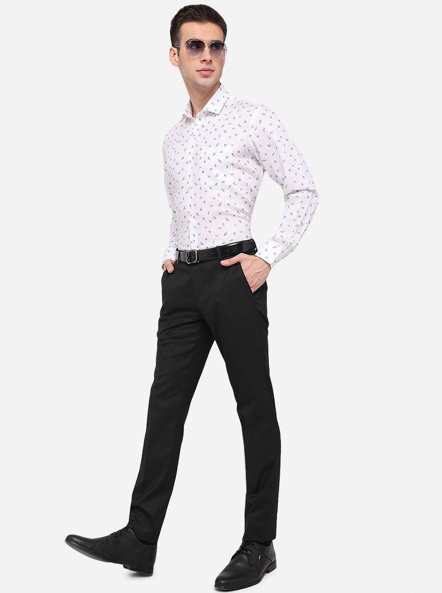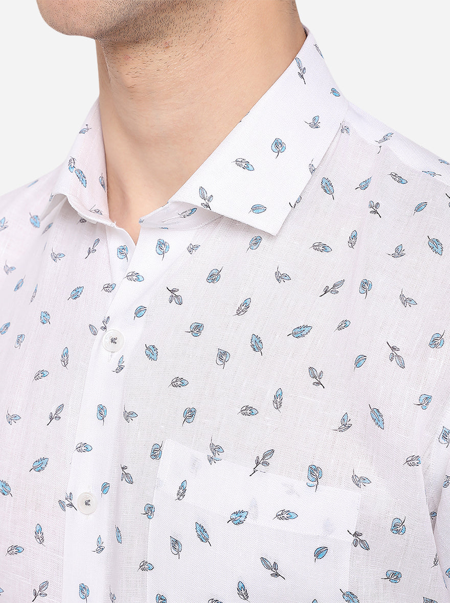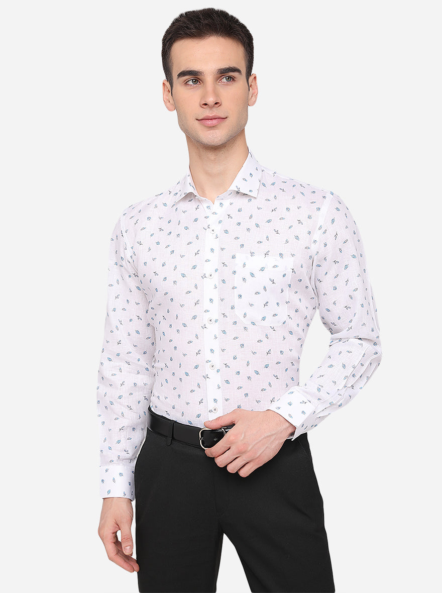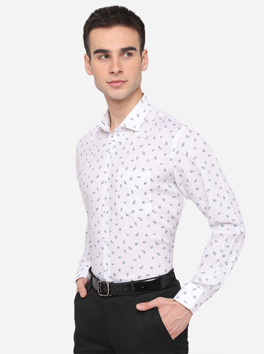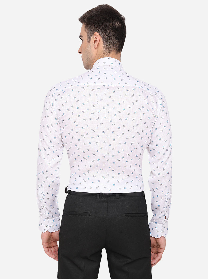 White Printed Regular Fit Formal Shirt | JadeBlue