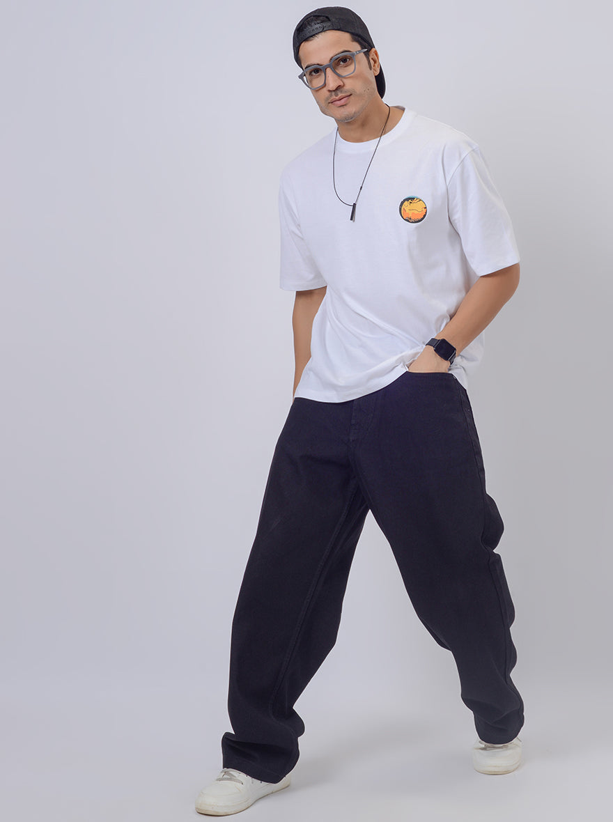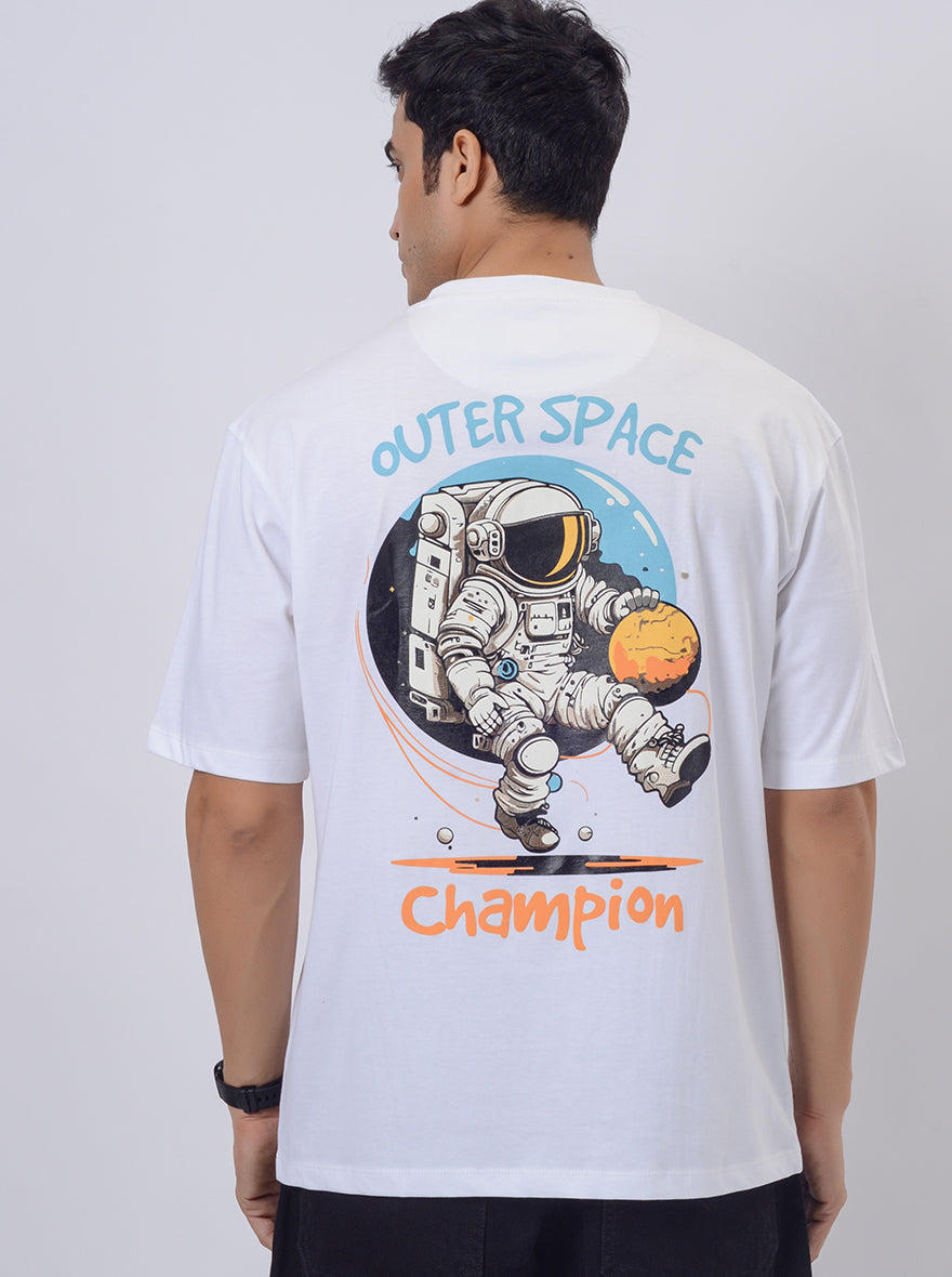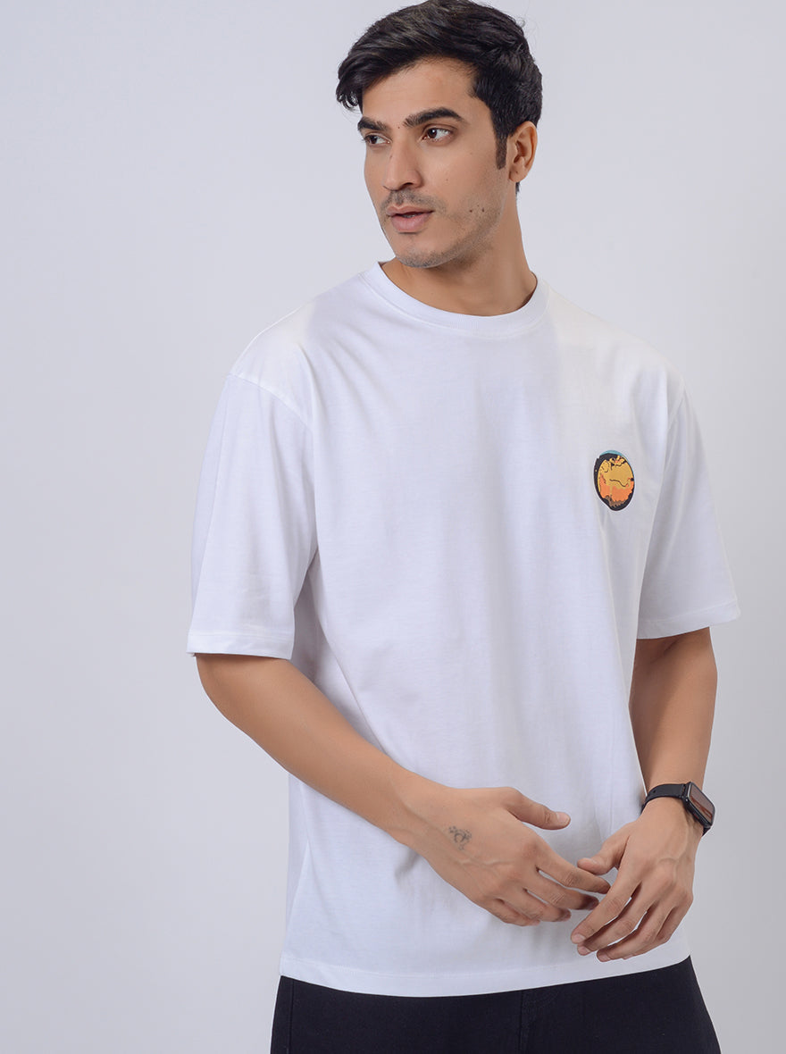 White Printed Relax Fit Oversized T-Shirt | JadeBlue