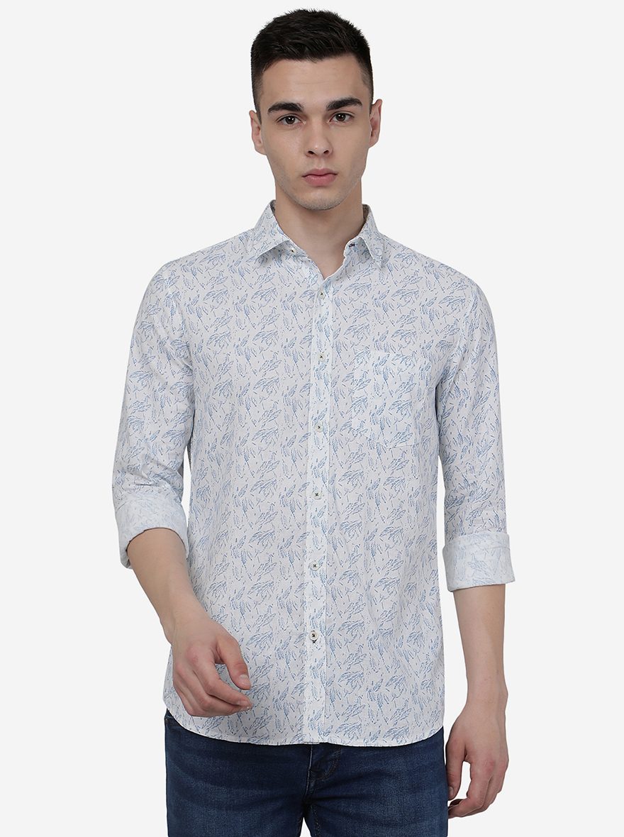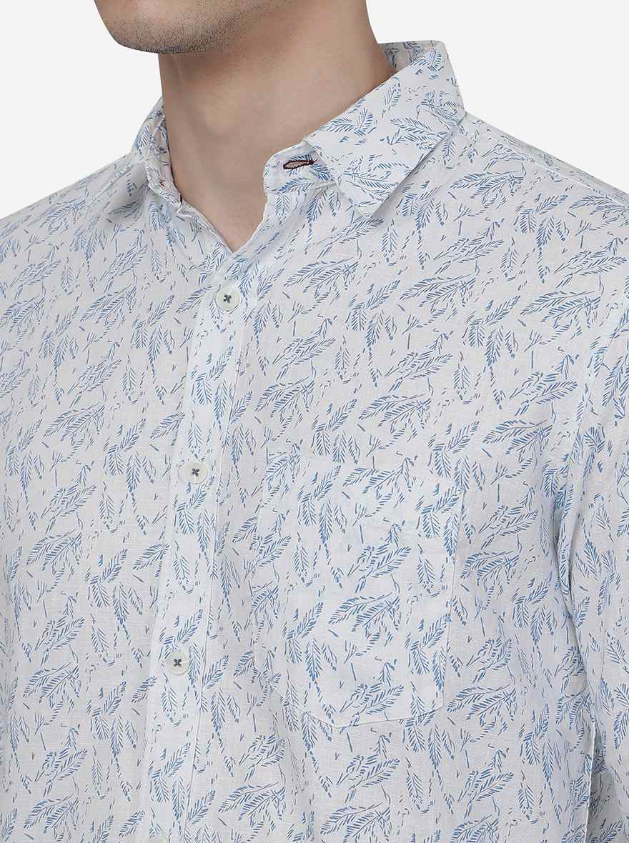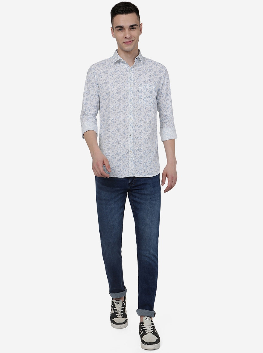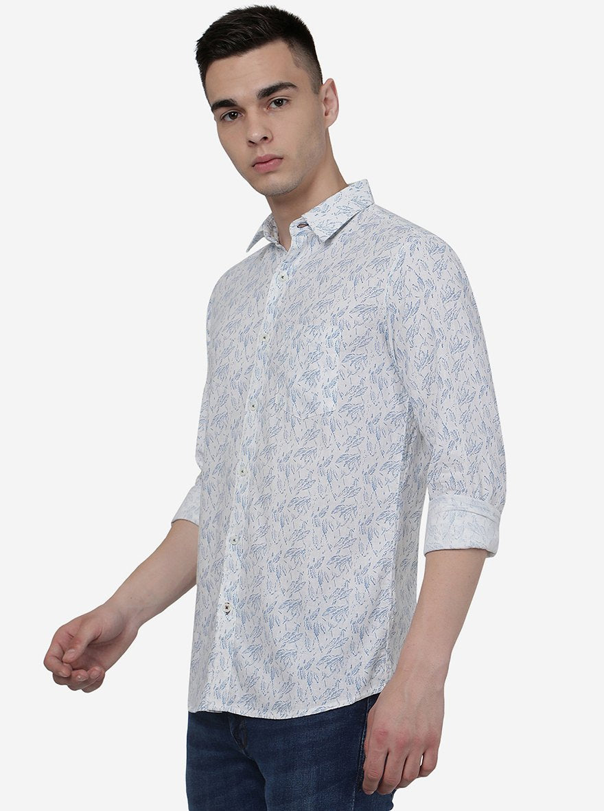 White Printed Slim Fit Casual Shirt | JadeBlue